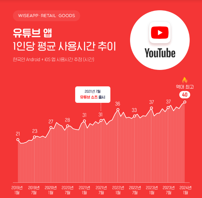 실제 조사대상인 4,565만 명은 한 달에 1번 이상 유튜브에 접속한 사용자를 모두 포함한 것을 감안하면, 실제 "인당 하루 1시간 30분보다는 훨씬 더 많은 시간을 소비했다"는 것을 의미합니다.