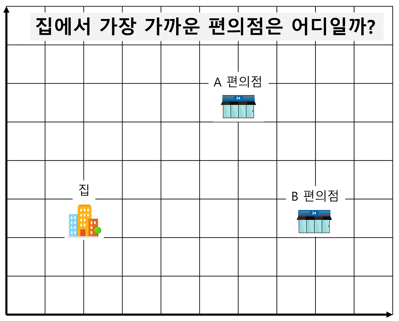 초등학교 시절 수학 문제를 떠올려 보세요. 집에서 가장 가까운 편의점을 찾는 문제입니다. 네이버 지도에서 거리만 가까우면 진짜 가까운 편의점일까요? 어디가 더 가까운지 거리를 계산하는 방식을 두 가지 소개해드릴게요.