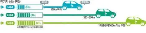 하지만 2021년 오늘 현대자동차 코나가 406KM를 갈 수 있다.올해 출시 예정인 테슬라의 S 모델은 예상 주행거리가 무려 840KM나 된다. 15년 만에 2배에서 8배 이상의 성능 향상을 이뤄낸 것이다. 국내에서는 LG화학, 포스코 케미컬 등이 연구개발에 박차를 가하고 있다.