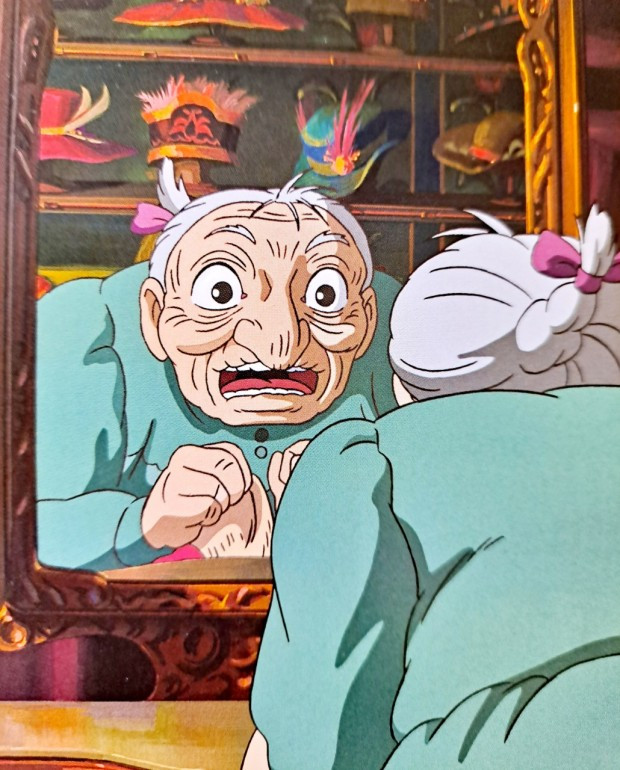 <하울의 움직이는 성>에서 마녀의 저주에 걸려 하룻밤 사이 할머니가 되어버린 소녀