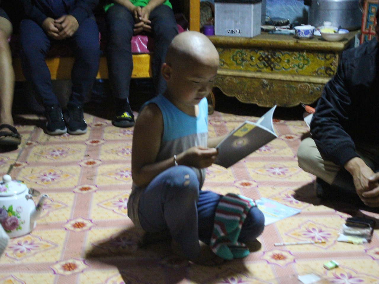 우리가 그 소년을 지나쳐 게르의 문에 섰을 때 소년의 엄마로 보이는 여자가 우리를 보고 살짝은 놀란 표정을 지으며 문 앞에 서 있었다. 우리는 그녀를 보고 말했다.