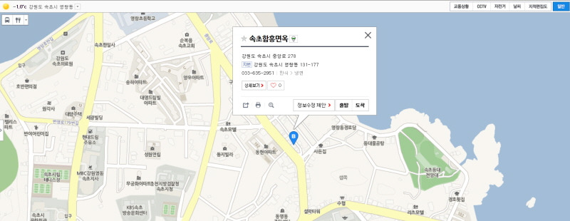 양념 자체는 살짝 매콤하다. 매콤한 고추장 양념과 명태가 어우러지는 게 이 집의 풍미다. 명태는 질기지만 눅눅하지는 않다. 명태 고명 두 점과 면을 함께 젓가락으로 떠서 한 입에 넣는다. 이거... 술이 함께 들어가면 참 좋으련만... 속초로 놀러간 적은 없고, 항상 일을 하러 가다보니... 쩝, 슬프게도 입맛만 다실 뿐...