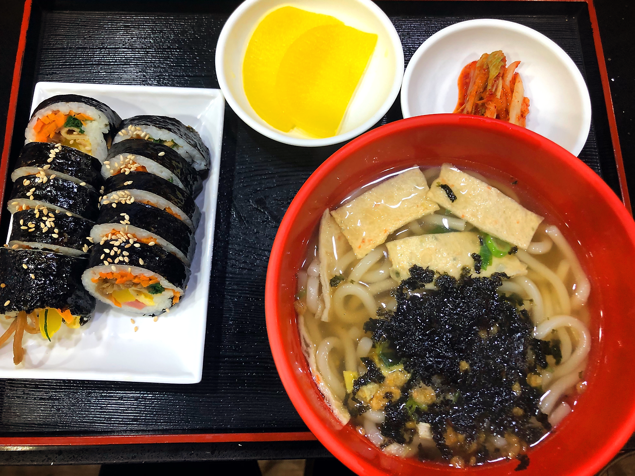 먼저 서울행 버스에 올라 탄 아래층 동기를 보내고 어슬렁거리다 4시간 동안 버스 타려면 뭐를 먹어야겠다 싶어 작은 식당에 들어갔다. 여러 메뉴가 있었는데 김밥을 먹기에 아쉬워 우동도 같이 시켰다. 양이 많긴 하겠지만 뭔가 따뜻한 국물은 조금 먹고 싶은데 라면은 별로 안 먹고 싶었다. 여럿이 앉는 테이블에 자리를 잡았다. 그 바로 앞에는 티비가 있었고 연합뉴스가 틀어져 있었다. 와 정말 오랜만에 보는 티비다. 정말 오랜만에 세상 돌아가는 걸 보고 있다(방에 와이파이가 안되고 데이터는 다 쓴 상황이다 다음 달에는 요금제를 반드시 바꿔야지).