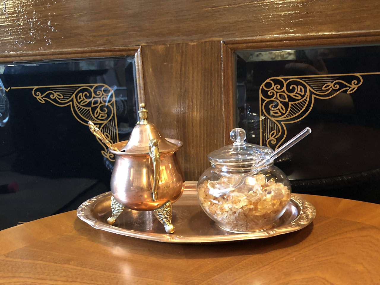 카페도 내가 쏠게! 지나가다 느낌 있는 카페에 들어갔다. 들어서자마자 인테리어가 정말 예뻤고, 외국의 호텔 로비나 기차의 고급 식당칸 같았다. 와 분위기 정말 예쁘고 우아하다. 요즘 읽다가 바빠서 못 읽고 있는 <모스크바의 신사> 속 호텔 식당 장면이 겹치면서 이 공간에 호기심이 생겼다. 안쪽으로 들어가면 직원이 커피 시향을 도와주고 라떼나 드립으로 내려준다. 나는 인도네시아 커피, 친구는 브라질 향으로 골랐는데 나라마다 고지대, 저지대 어디서 생산된 커피이며 이건 상큼한 향이 특징이다, 고소하다, 라떼로 마시면 향이 극대화된다, 등 세세한 설명을 들으니 향이 더 풍부하게 느껴졌다. 친절하기도 하셔라.