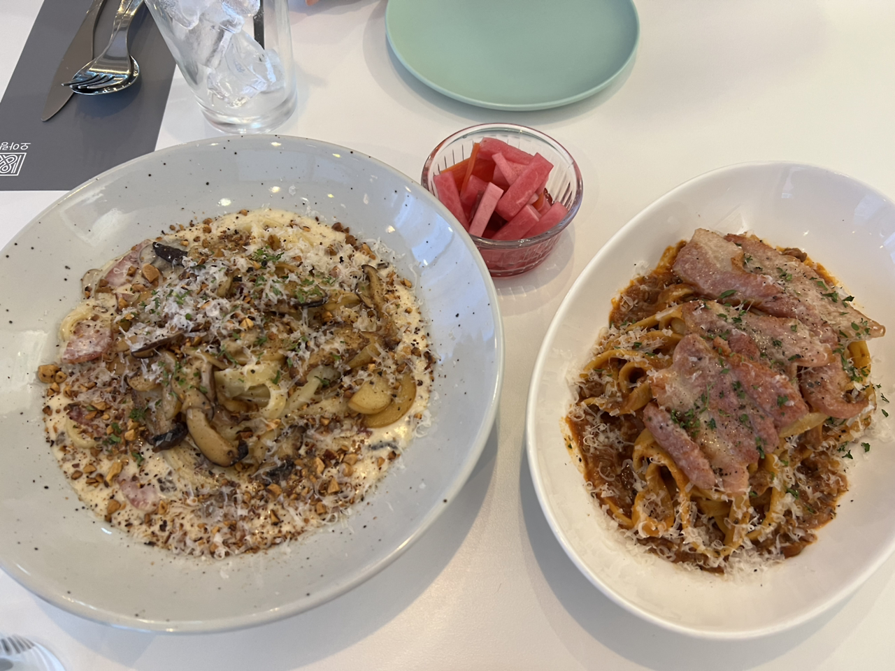 친구가 데려간 곳은 금련산역에 있는 파스타 집이다. 직원 한 명이 주문도 받고 요리도 하는 작은 파스타집이다. 우리는 라자냐를 먹고 싶었는데 하필 그 메뉴만 안된다고 했다. 트리플 오일 향이 나는 크림 파스타와 볼로네제 라구 파스타를 시켰다. 얇은 스파게티면이 아니라 약간 도톰한 면도 소스도 정말 맛있었다. 가격도 만 원 초반대로 가성비 좋은 곳이었다.