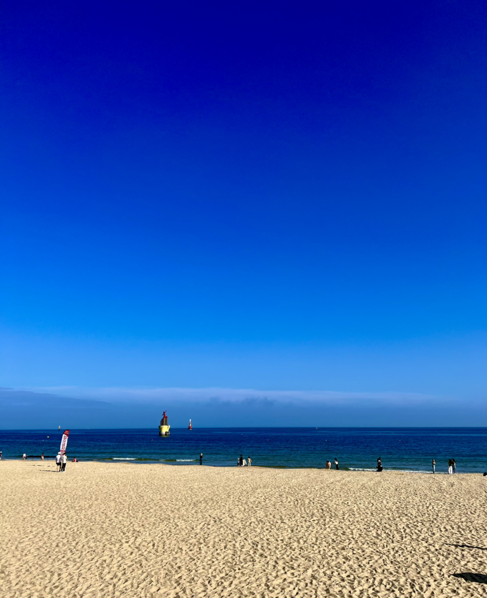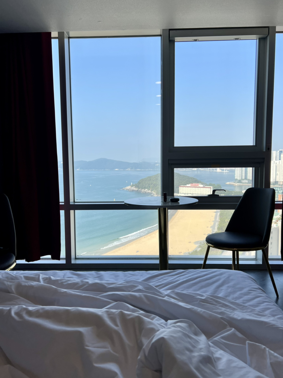 퇴근 후에 이런 풍경을 보며 일상을 보내면 어떨까? 6시가 다 되어가는 해변가는 눈을 제대로 뜨기 힘들 만큼 햇빛으로 쨍했다. 벌써 옷을 벗고 해변가에 누워있는 사람들이 많았다. 호텔에서 수영장 이용권 두장을 무료로 주겠다고 했는데 수영복을 가져오지 않아서 아쉬웠다. 대한민국 숙박 대전으로 7만 원 이상 예약 시 5만 원 할인을 하길래 오션뷰룸으로 예약했는데 아침에 눈을 뜨는데 바다가 보이니 새롭다. 황토색 모래 색깔도 기분이 좋다. 그런데 새로운 곳이어도 아는 사람 한 명 없이 외딴곳으로 와서 일하는 것도 나중에는 우울증에 빠질 것 같다.