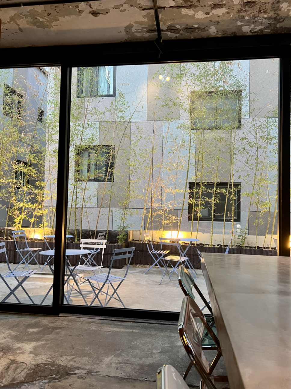 음료와 함께 찹쌀떡이 같이 나왔다. 한입에 넣고 입속에서 말랑말랑 좌우로 옮긴다. 두리번거리다 왼쪽 편을 바라봤는데 야외 조명이 켜졌다. 단편 두 개를 읽고 나니 어느새 시간이 지났다. 여전히 손님은 나뿐이다. 평일이라 해도 금요일 저녁인데 이렇게 손님이 없나. 새로운 도시에서 일하면 매일 감각적인 새로운 곳을 찾아다니는 일이 재미있을 것 같다.