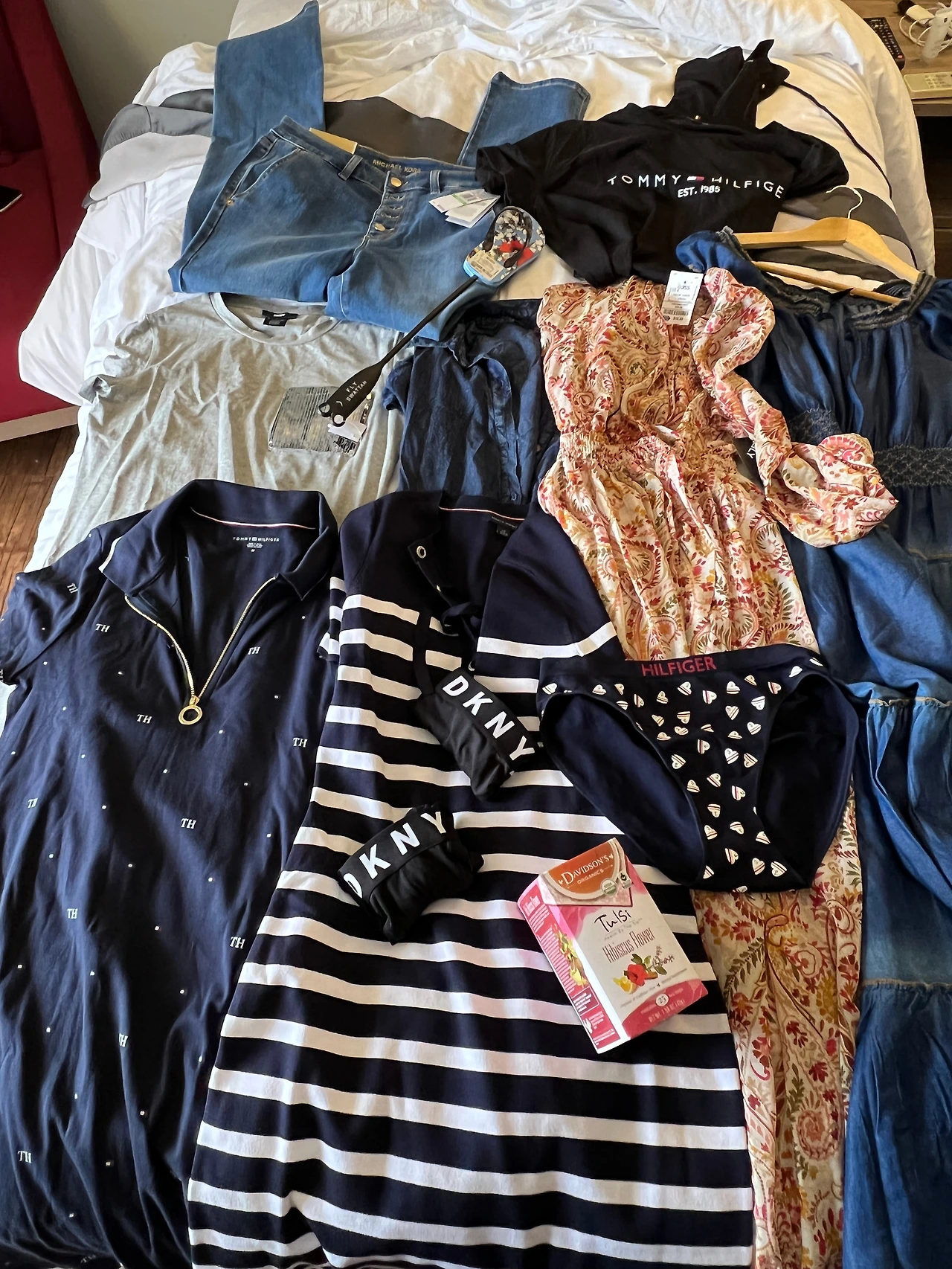 스팸은 선물로 줄 것 외에는 한 개만 사 왔는데 먹어보니 담백하고 맛있어서 더 사 올 걸, 하고 후회했다. 다음에 괌을 가게 되면 마트부터 들려서 물과 스팸, 요거트, 과자, 음료수 등을 잔뜩 사놓고 시작하리라. 타미 힐피거에서 니트 가디건을 사고 싶었는데 내가 갔을 때는 여름 제품만 있었다. 타미는 세일 중인데 추가 세일도 많이 해서 팬티는 4달러 정도, 원피스는 31달러로 정말 싸고 좋은 게 있었다. 로스라는 옷이며 수영복, 신발, 캐리어, 가정용품 등을 엄청나게 득템 할 수 있는 곳도 있다. 5.99달러에 슬리퍼 모양의 엄청 귀엽고 유머러스한 파리채를 선물로 샀고, 유기농 히비스커스 티백 티도 2달러 대에, 10만 원이 넘는 시세이도 세럼을 29달러에, 마이클 코어스 청바지와 dkny 원피스를 19.99 달러에 샀다. 청바지는 미국 브랜드들이 사이즈별로 분류되어 있는데, 내 사이즈만 잘 파악하면 괜찮은 걸 잘 건질 수 있다. 나는 8 사이즈여서 8~10에서 보고 괜찮은 걸 입어봤는데, 부츠컷부터 핫팬츠 등 색깔과 종류가 다양하다.
