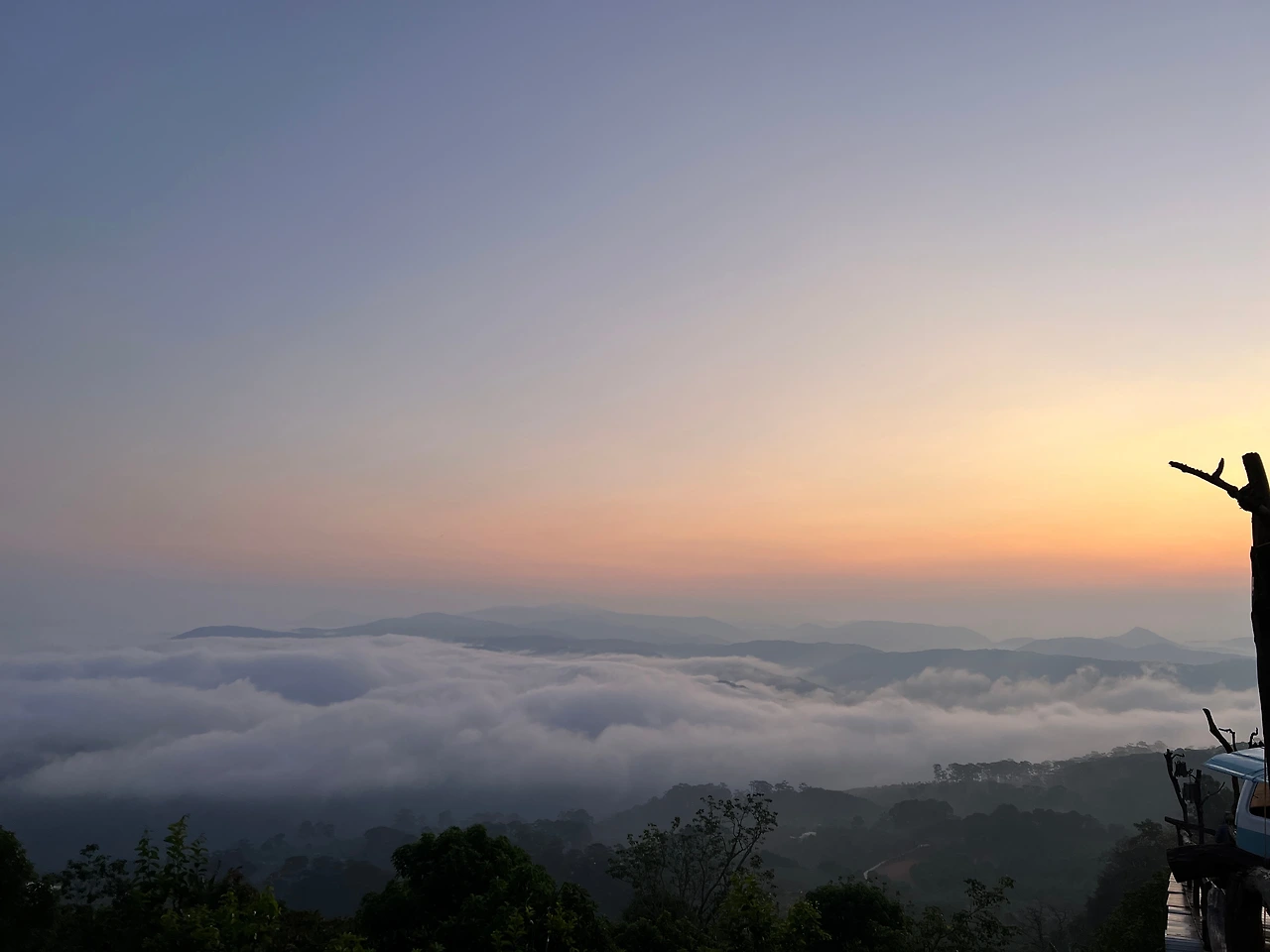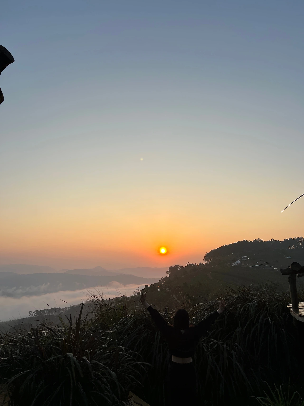 약 40분 정도 달렸을까, 카페 같은 곳이 나왔는데 자기는 주차를 할 테니 내리라고 했다. 관광객들이 일제히 내려 카페로 들어가길래 따라 들어갔다. 카페를 통해 일출을 볼 수 있도록 조성해 놓은 곳으로 가는 거였다. 운전기사들은 주차장에 차를 대고 손님들이 한 시간 반정도 사진도 찍고 즐기는 동안 차를 마시면서 기다린다. 입장료를 내야 했다. 12만 동. 6~7천 원 정도. 베트남 사람들에게도 달랏은 관광지라는데 베트남 관광객들이 대부분이었다.
