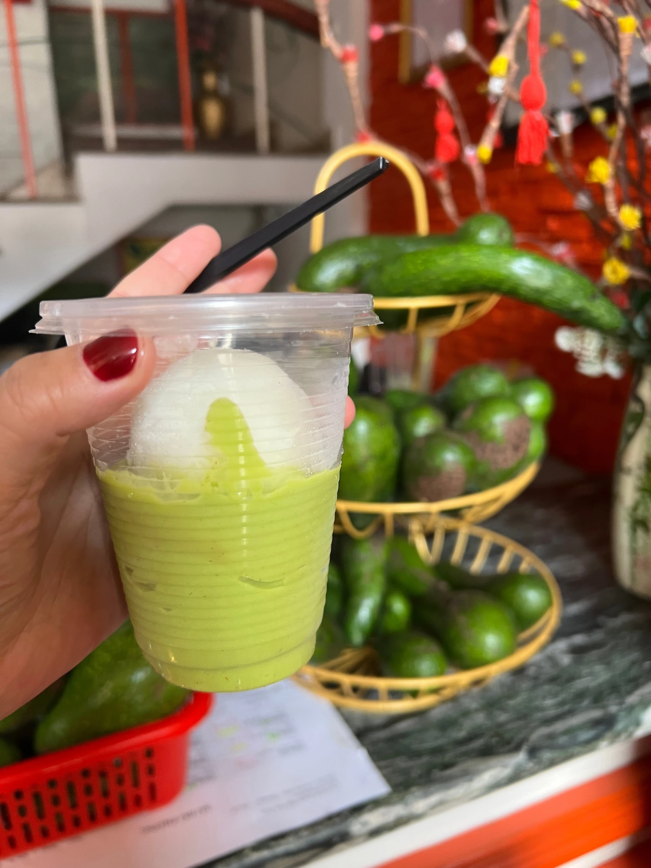 껨보(Kem bo)는 아보카도에 코코넛 아이스크림을 올려주는 건데 정말 맛있다. 시장에서도 쉽게 살 수 있고 호텔 근처에도 많이 판다. 첫날 걷다가 쉬려고 카페에 들어가 아보카도 셰이크를 시켜 먹었는데 정말 맛있다. 시장에서 본 아보카도는 정말 길쭉해서 우리가 평소에 보던 아보카도가 아니다. 애호박 같아 새롭다.