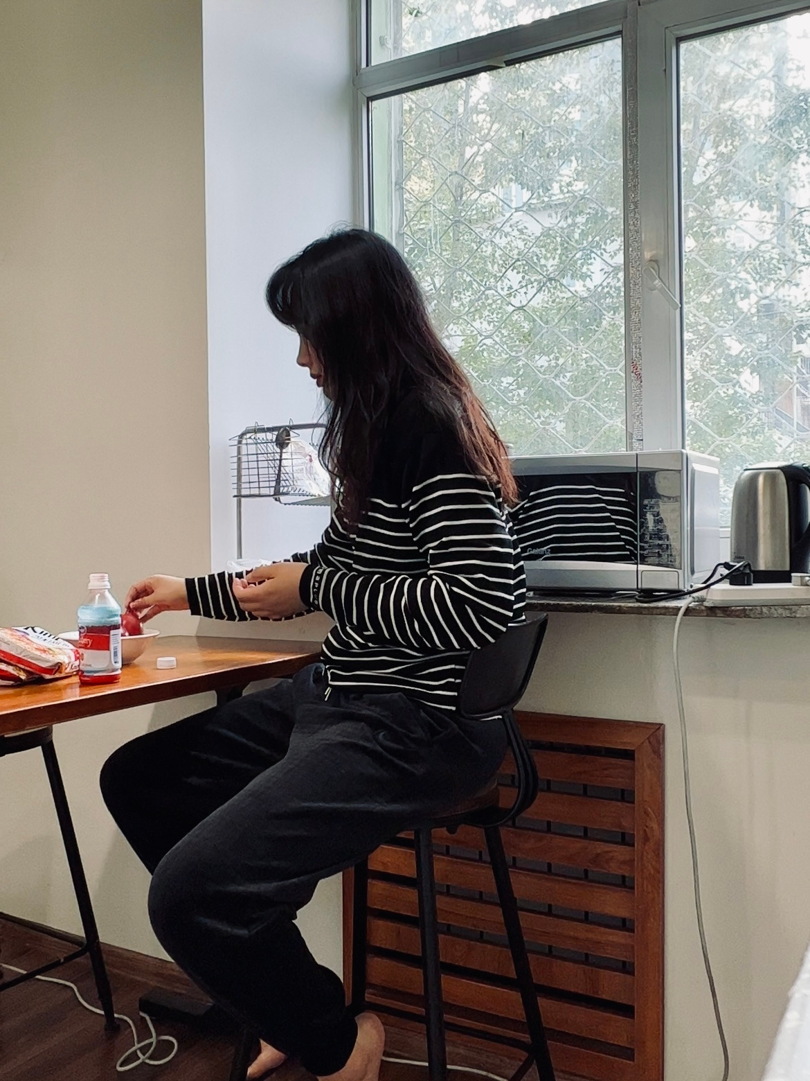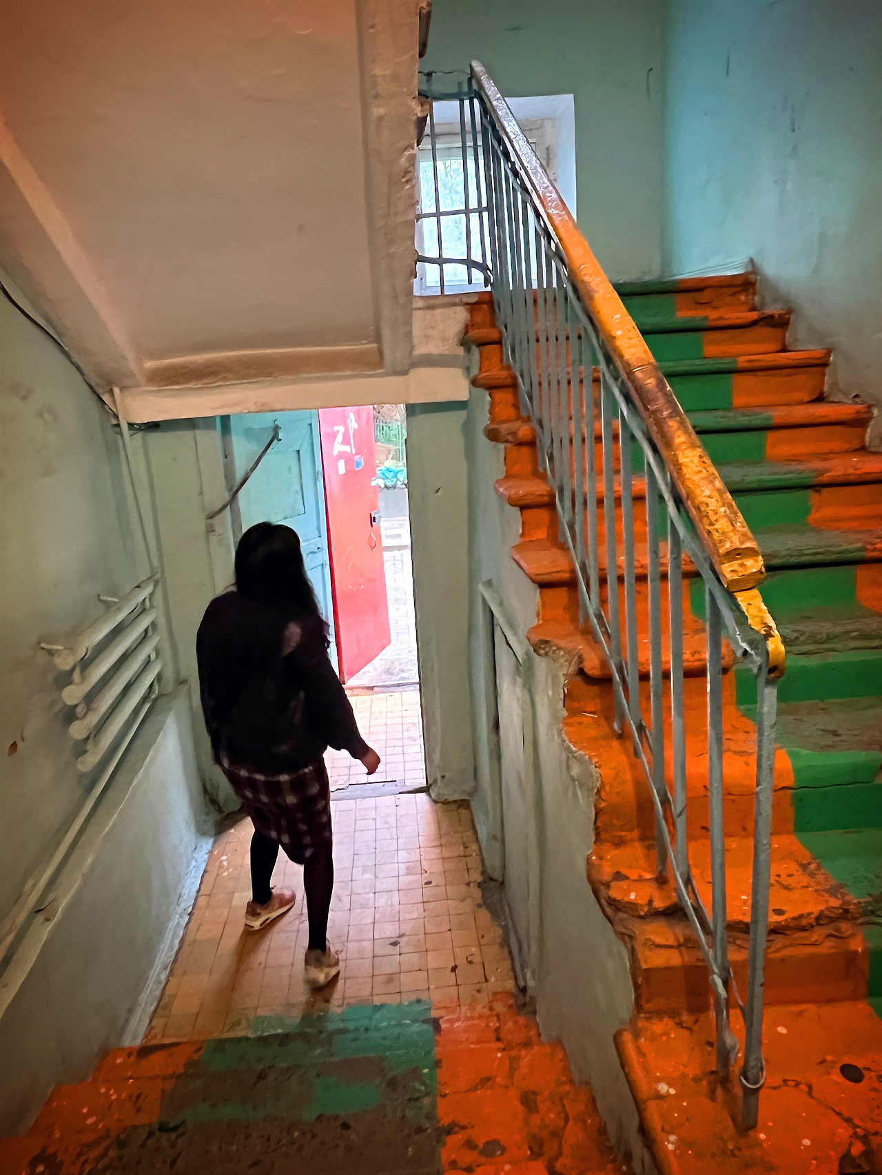 외관은 구소련 아파트처럼 낡은 느낌인데 실내는 깔끔하다. 침대는 널찍하고 높고 푹신하다. 추울까 봐 히터가 따로 있는데 있는 동안 날이 추워져서 틀어 놓고 생활해야 했다. 한 가지 단점은 실내화가 없다는 점이다. 출장에서 혼자 방을 쓸 때 남은 일회용 호텔슬리퍼들을 챙겨 올 걸, 하는 생각마저 든다. 조명은 따뜻한 색이고, 소파와 책상 그리고 꽤 커다란 티비가 있다. 세탁기도 있어서 좋다.