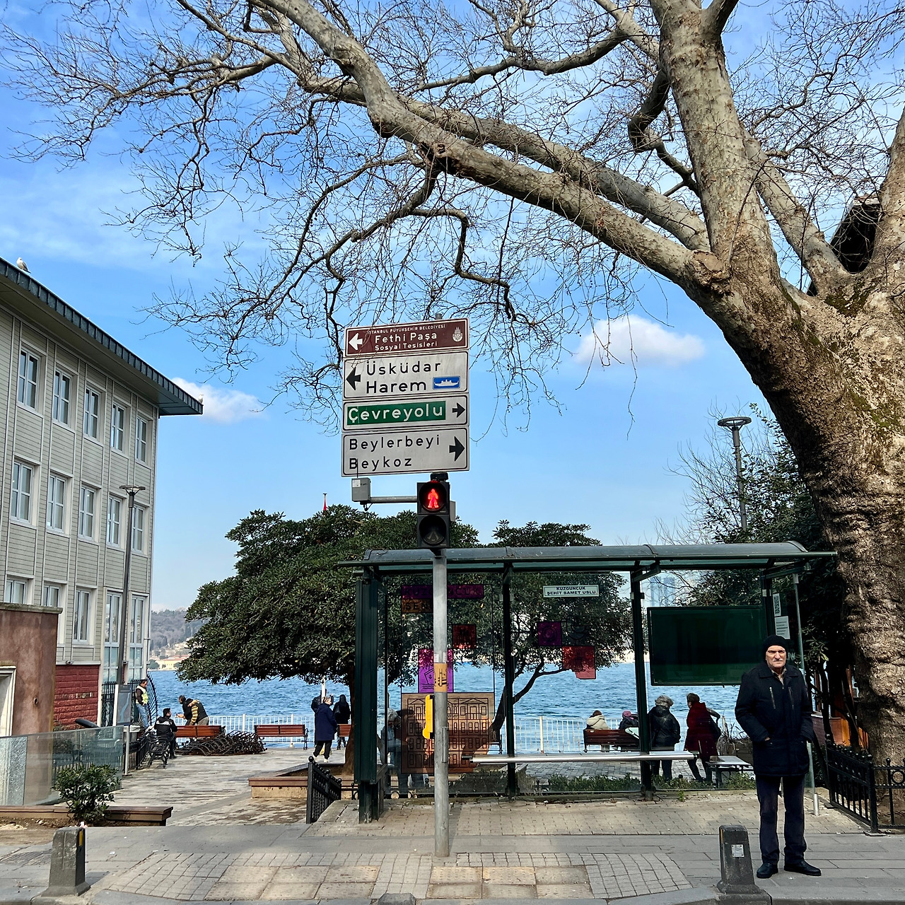 왔던 길을 되돌아가며 바닷가 쪽으로 가는데 버스정류장 풍경이 너무 아름답다. 결국 어차피 비상금도 필요했으니 500 리라 정도 찾는다. 체크카드 결제보다 수수료가 비싸서 현금은 웬만하면 안 썼는데 또 버스카드 충전에 카드가 안 되는 곳도 있고 길에서 뭘 사 먹으려면 또 필요할 때가 종종 있다. 약속은 빨리 지키는 걸 좋아해서 얼른 할머니한테 가서 200리라를 주고 목걸이를 찾아왔다. 인스타그램에 올렸는데 미술사를 공부하는 독일인 친구가 너무 예쁘다며 하트를 보냈다. 항상 아름다운 것, 예쁜 것의 사진에 서로 좋아요를 누르곤 한다. 거리의 아름다움, 빛과 그림자, 아름다운 것을 스토리에 올리며 내가 좋아한 포인트를 잘 공감해 준다.