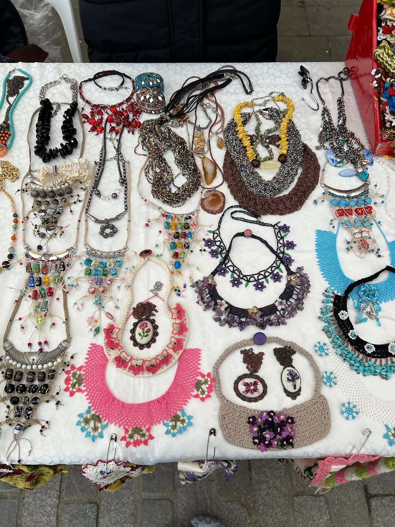 쿠즈쿤즉을 정처 없이 걷는데 한 골목에 천막을 치고 죽 늘어선 거리에 핸드메이드를 팔고 있다. 할머니, 아줌마들이 각자 자기가 만든 걸 꺼내고 팔고 있다. 뭐 뜨개질한 것부터 주얼리 등 여러 가지가 있다. 이중에 한 할머니가 팔고 있는 목걸이 매대로 가는데 예쁜 것들이 많다. 하나씩 목에 대보는데, Handmade, 하고 영어로 말한다. 내가 How much? 하니 two hundred fifty, 하고 말한다. 간단한 숫자 영어를 하는 할머니다. 거울이 없어서 핸드폰 셀카로 이것저것 대보는데 옆 테이블의 50대 초반으로 보이는 긴 머리를 집게핀으로 위로 틀어 올린 카멜 코트의 아줌마가 거울을 구해다 준다. 250이라니 만원 정도니 생각보다 싸다. 목에 착 맞는 목걸이를 찾고 있었는데 검은색의 시크한 목걸이가 눈에 들어온다. 아, 현금이 없는데. 두명이나 달라붙어 있고 이것저것 봤는데 안 사긴 그래서 ATM 가서 현금을 뽑아오겠다고 번역기로 말했다. 그랬더니 뭘 사고 싶냐고 따로 챙겨주겠다고 봉투에 넣어 보관한다. 내가 산 것 마음에 든다. 셔츠에 하면 예쁠 듯 하다.