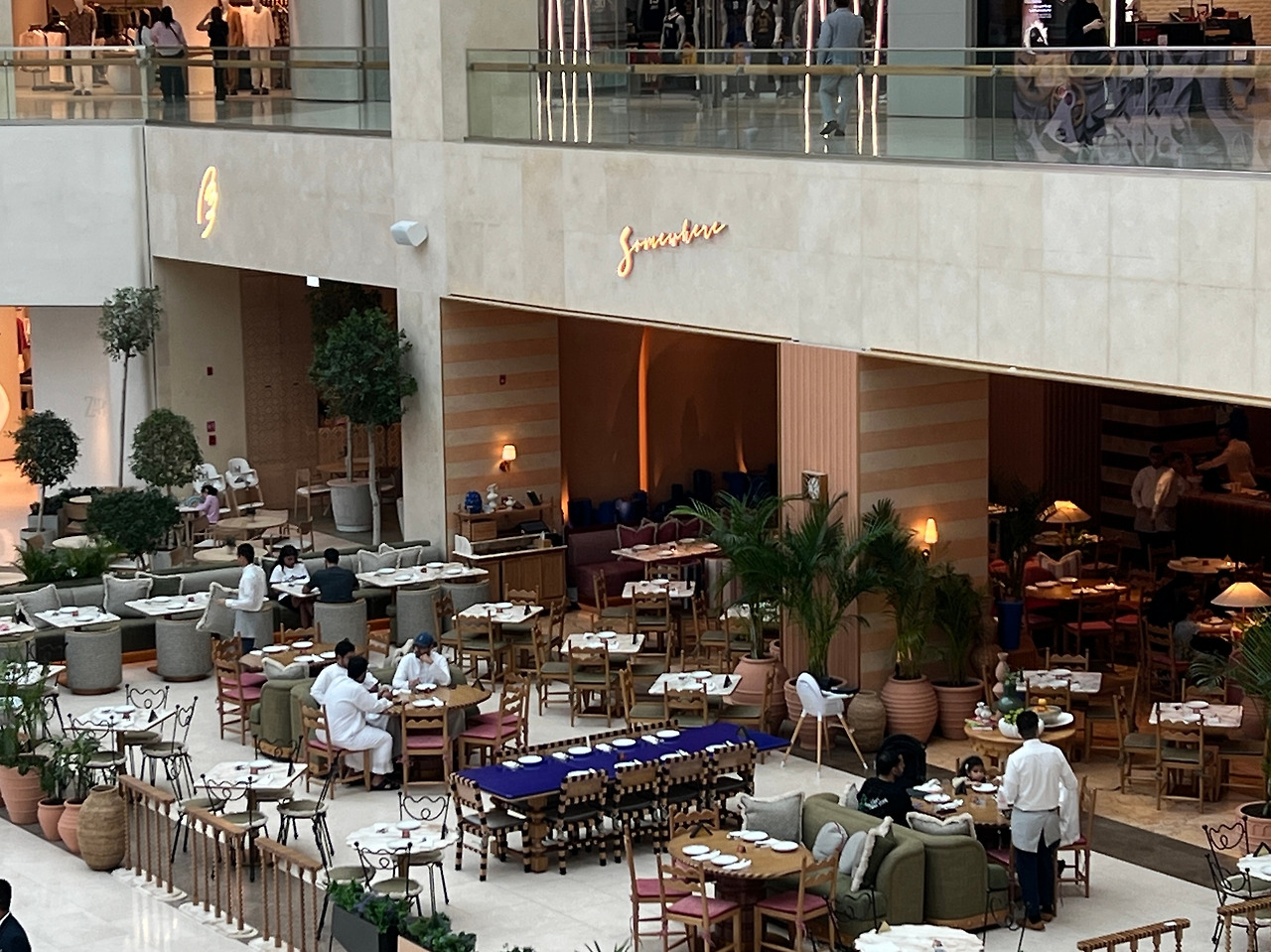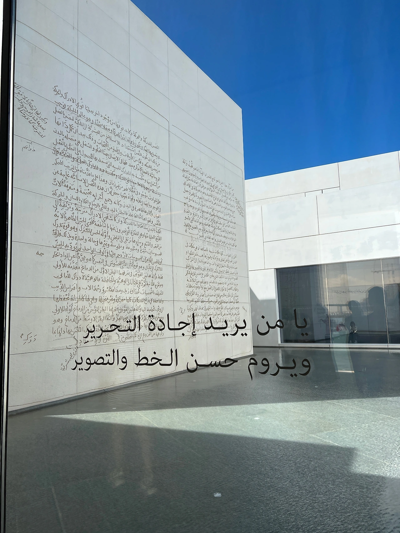 - 야자수에 이국적인 풍경이다. 가장 중요한 것은 카페고 쇼핑몰이고 영화나 뉴스에서만 본 아랍 의상을 입은 사람들이 지나다닌다. 새하얀 원피스에 빨간색 두건을 쓴 남자들, 새까맣게 눈만 내놓고 머리부터 발끝까지 뒤집어쓰고 다니는 여자들이 내 주변에 앉아있다. 그간 보지 못한 완전히 다른 세계이다. 아랍어로 쓰여있는 글씨가 신기하고 재밌다.