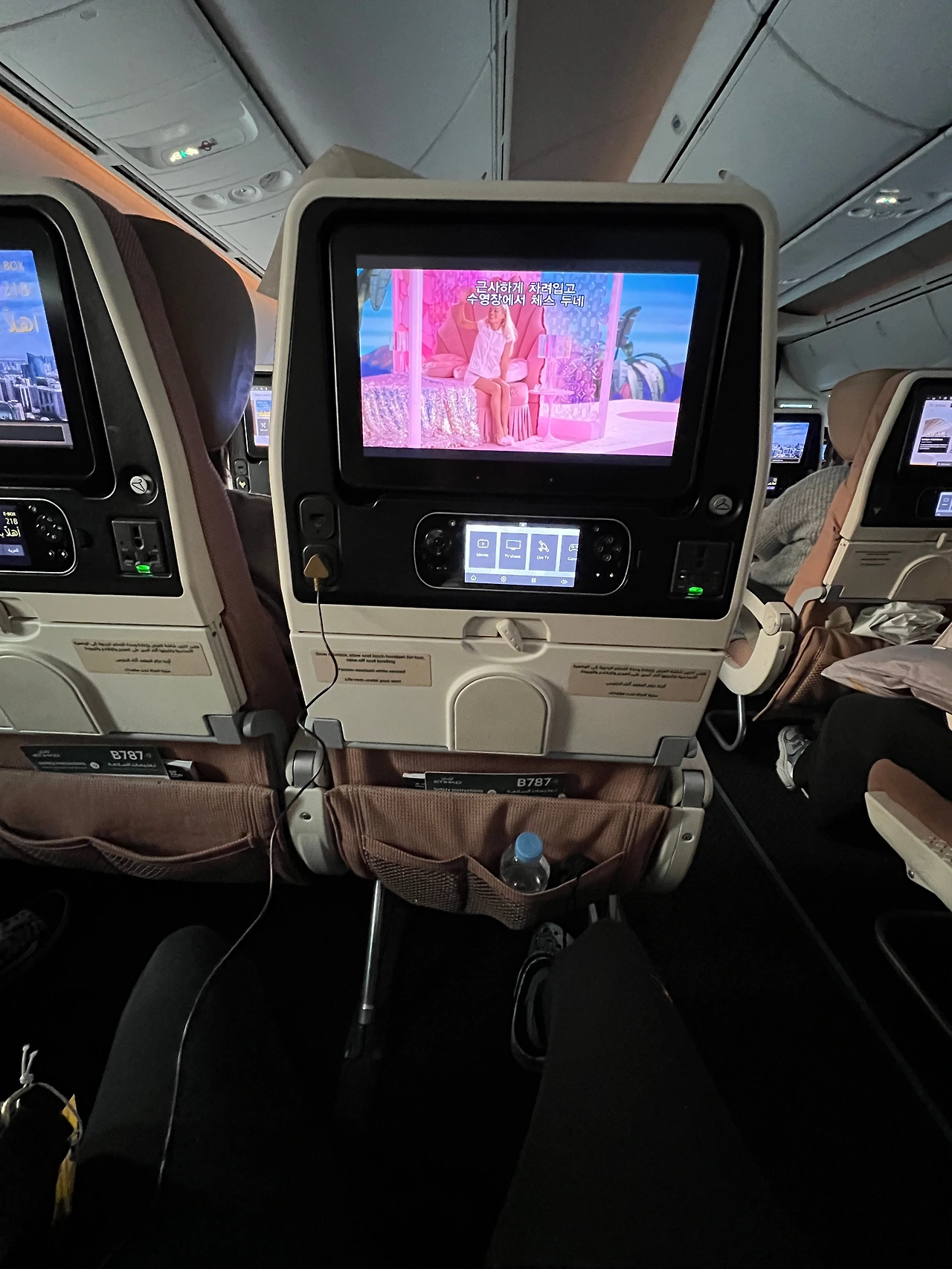 - 에티하드 항공이 좋다. 기내식에 비빔밥, 양념치킨이 나오고 베지로 달라하니 토마토 파스타도 맛있었다. 최신영화가 한국어 자막도 있어 좋다. 영화 몇 편 보고 기내식 먹다 보면 금방 시간이 간다. 8-10시간이라는 단점이 큰데 괜찮았다. 게다가 나는 홈페이지에서 예약을 해서 올 때 갈 때 모두 다리 조금 넓은 자리로 주었다.