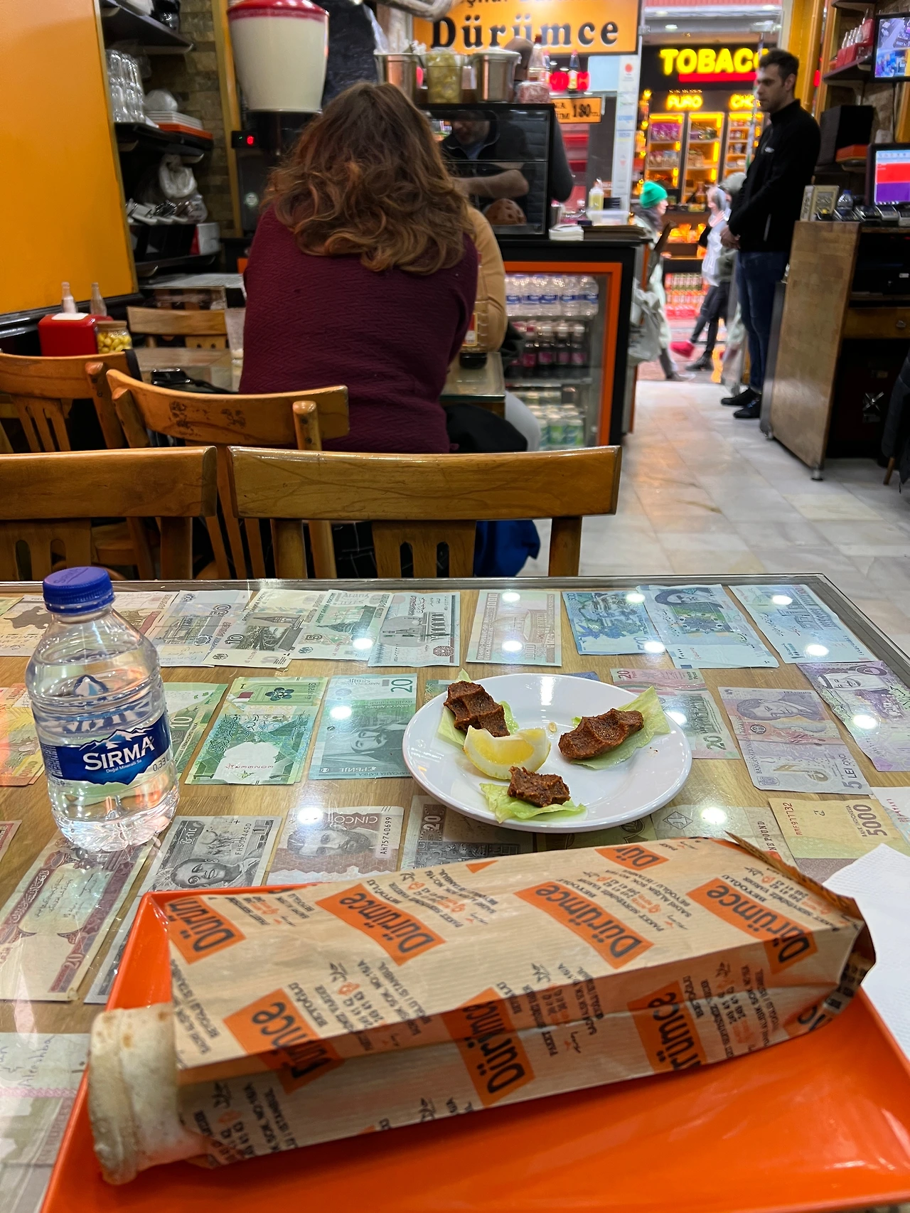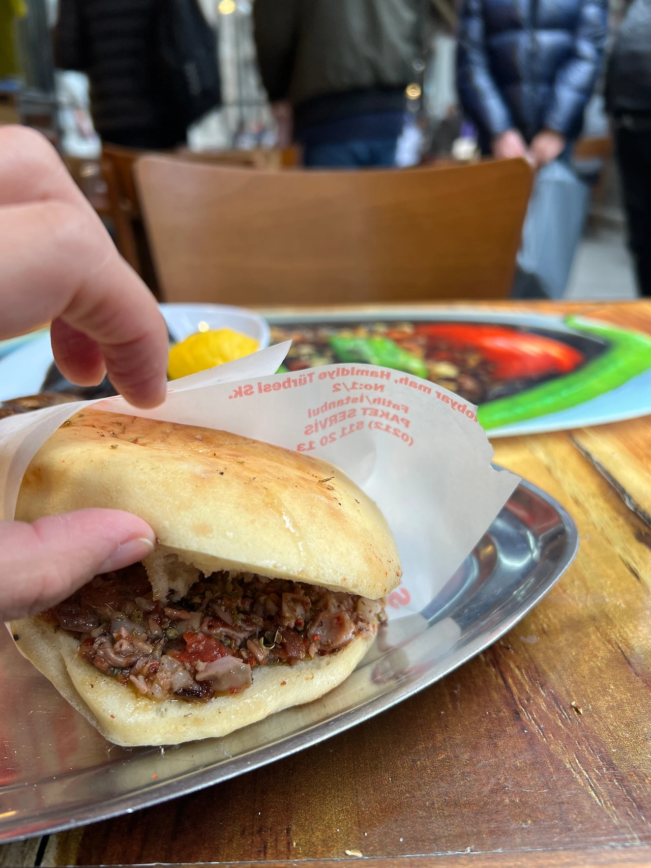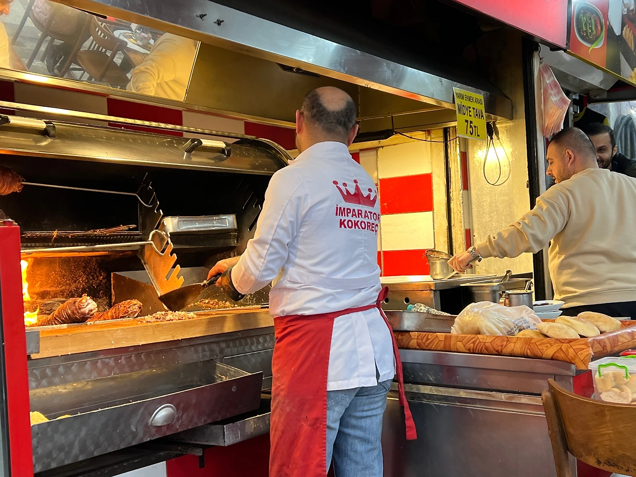백종원의 이스탄불 유튜브 영상을 보고 뭘 먹어보면 좋겠다, 하는 아이디어를 얻었다. 마지막 날 뭘 먹고 갈까, 하고 호텔방에서 영상을 보다가 그중에 곱창케밥이라는 코코레치가 있었다. kokoreççi, 하고 구글맵에 검색하니 근처에 몇 개가 있었다. 이집션 바자르 근처가 호텔에서 가까웠다. 원래 여길 찾아온 거지만 아저씨 영업에 의해 들어온 것 같은 느낌으로 자리에 앉았다. 메뉴 있나요? 하니 내가 곧 메뉴라고 말하면서 램 코코레치와 뭐 뭐를 말했다. 아, 램 코코레치 주세요! 하니 고기 근처에 있는 아저씨는 곱창을 엄청나게 잘게 다지기 시작한다. 음료는 뭘로? 하고 묻길래 아, 물 주세요, 하고 말했고 물까지 포함해 130리라, 5500원 정도로 굉장히 저렴하다.