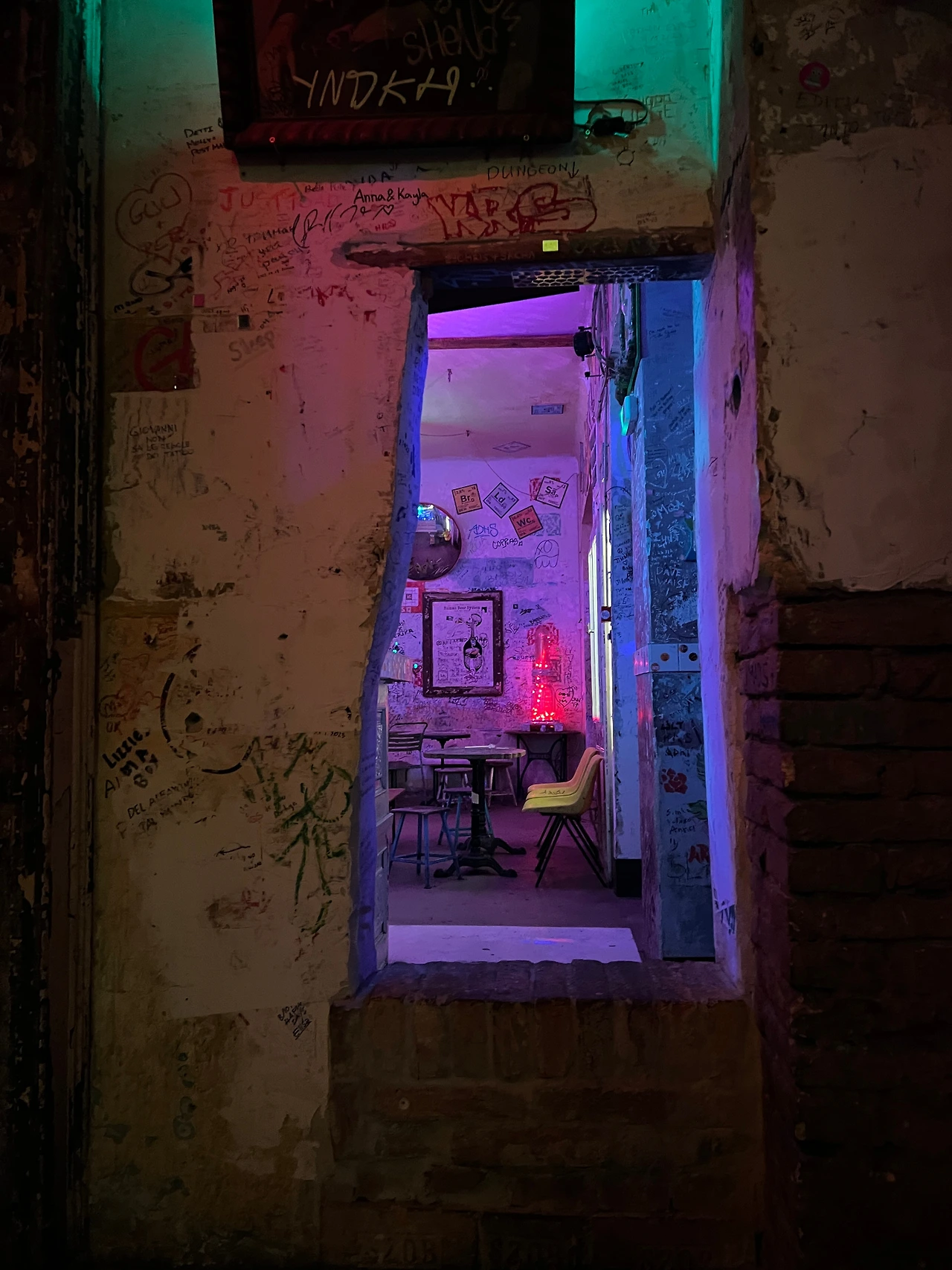 시내 가운데 있는 루인펍은 구경할 만하다. 루인펍 crawl이라고 여러 군데 다니면서 소개해주는 에어비앤비 등에서 찾을 수 있는 체험이 있었는데, 컨디션이 괜찮다면 참여해 친구도 사귀고 얘기도 나누고 했을 텐데 기침이 너무 심해 피 토하는 느낌이어서 나는 지나가다 구경만 했다. 나이 많은 유럽인 관광객 아줌마들도 들어와서 사진을 찍는다. 막상 머무는 사람은 많지 않고 구경하고 사진 찍고 나가는 사람들이 많은데, 음악도 조명도 인테리어 분위기도 너무 좋다.