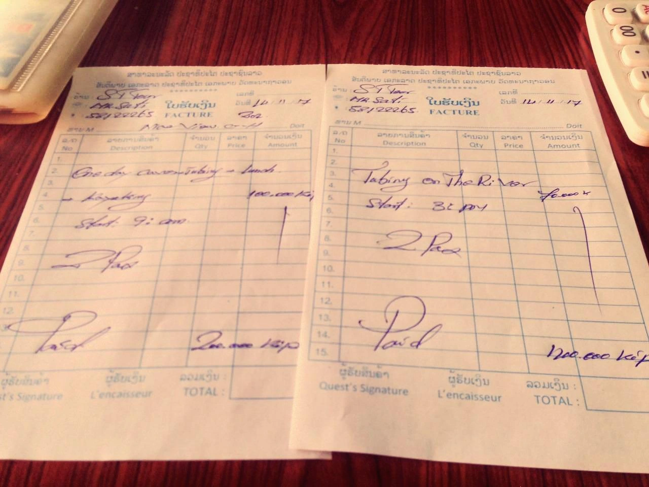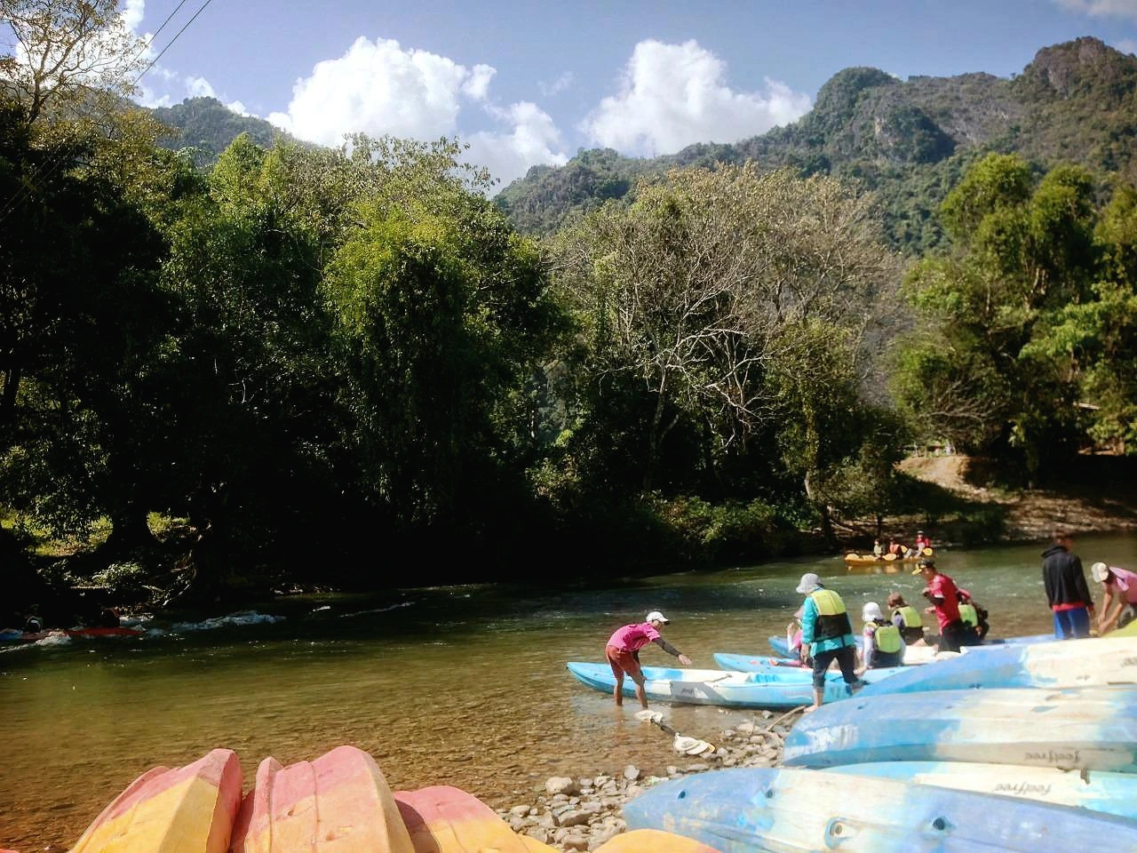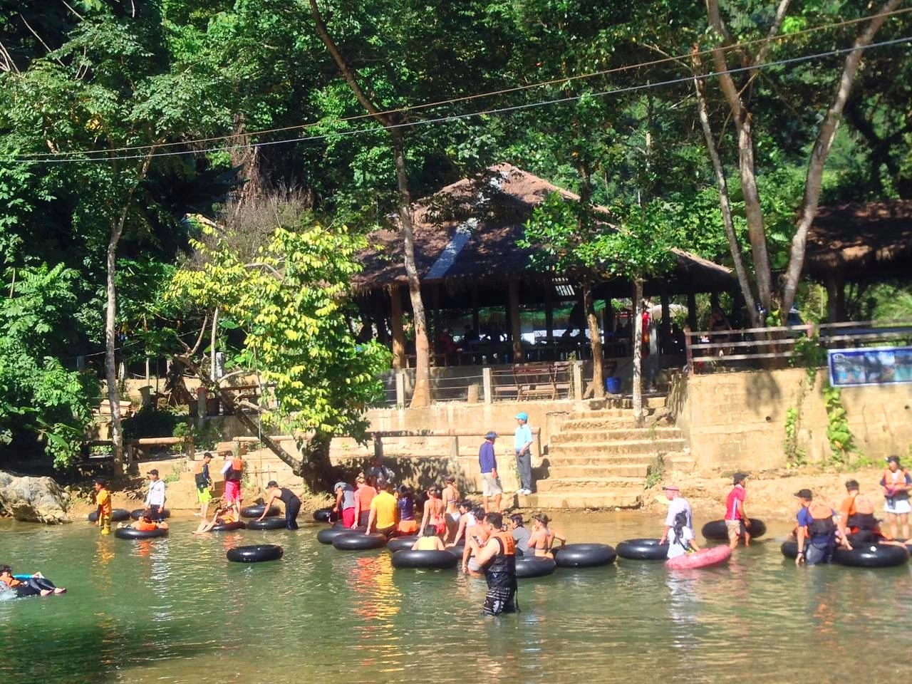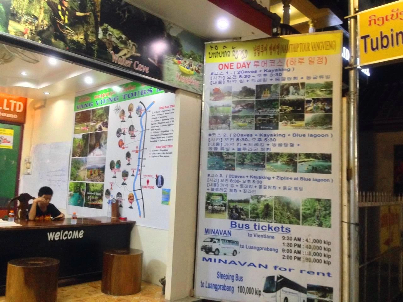 우리는 서 너 곳을 돌아다녀본 뒤 한 여행사에서 10만낍짜리 동굴 큐빙-카약 코스와 6만낍짜리 남송 강 튜빙을 예약했다. 나름 가격 협상을 한 것인데 괜찮은 가격인 것인지는 모르겠다.