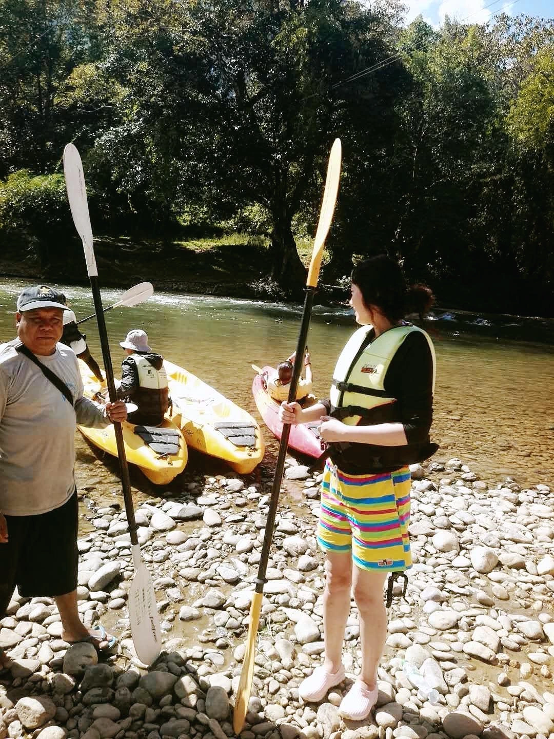 다행히 이번에는 여성 두 명인 우리 배에 현지 가이드가 타 주어서 수월했으나, 그 사람만 젓게 하기에 너무 힘들 것 같아 열심히 저었더니 며칠 동안 팔이 얼얼하였다. 강 폭은 넓어서 부딪힐 걱정은 없었지만 뒤처지지 않기 위해 서둘러 쉼 없이 따라가야 했다. 게다가 내 친구가 운동신경이 심각하게 없어서 자기는 노를 아예 못 젓겠다고 선언하는 바람에 나 혼자 열심히 저어야 했다.