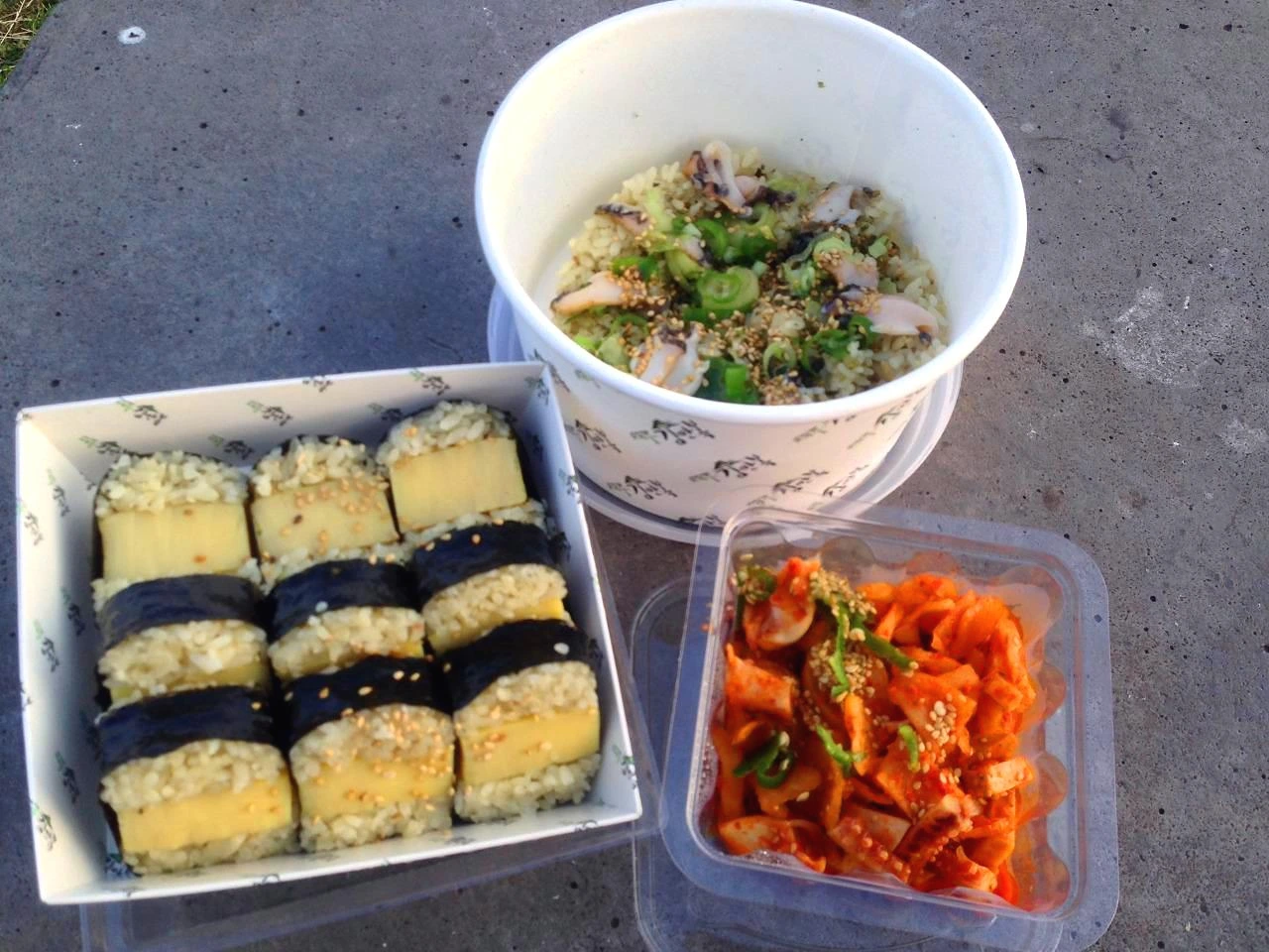 김밥은 한 번 사 먹어 본 데 족했다. 5,500원이라는 가격 대비 별다른 맛이 없었다. 크기도 커서 한 입에 먹기 부담스러웠다. 입에 가득 넣으면 목이 메어 제대로 씹지 않고 삼켜져 먹을 때마다 매번 목에 걸릴 것 같은 위기를 넘기며 먹는 크기였다. 다시는 사 먹지 않을 것 같다.