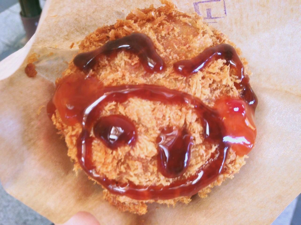소스로 돼지를 그려주며 건네 준 고로케 속에는 고기가 꽉 차 있었고 고기 맛이 풍부했다.