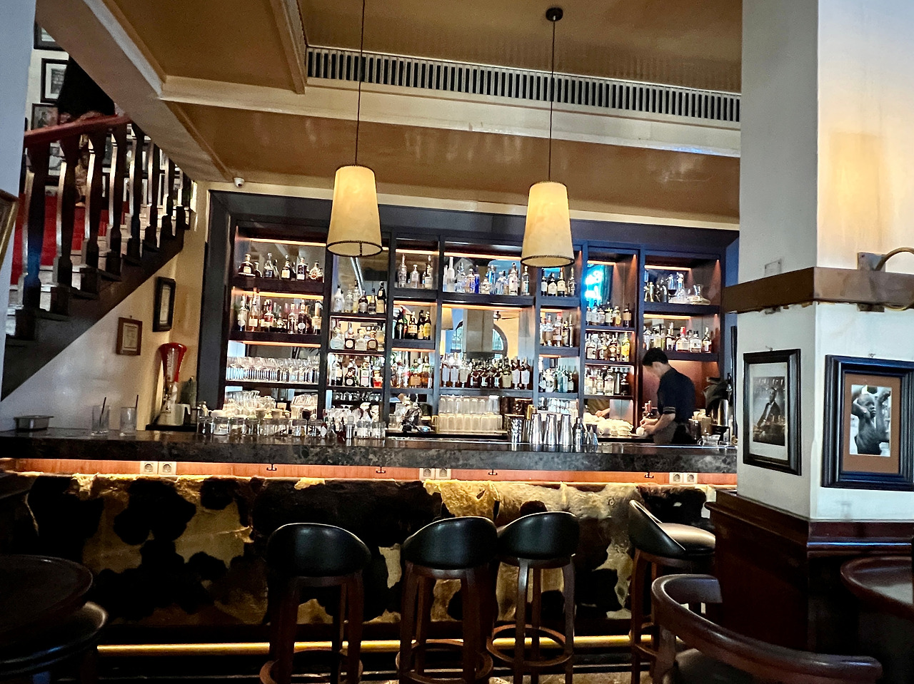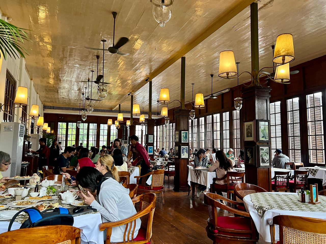 1층에 들어서니 20세기 초 헤밍웨이, 피츠제럴드와 같은 사람들이 모여 삶과 예술을 논했을 것 같은 분위기의 장소이다. 우아하고 분위기 있는 커다란 공간에는 이미 사람들이 많이 모여 북적이고 저녁에는 밴드 연주가 있을까, 밴드 연주를 하는 바와 라운지도 있는데 공간이 너무 예쁘다. 저녁에 와도 너무 좋겠다. 1층은 흡연실이라 나는 2층으로 안내를 해주었다. 예약을 안 하고 갔지만 기다리지 않고 금방 자리가 났다. 2층으로 향하는 길에는 역사를 보여주는 듯한 갖가지 액자가 잔뜩 걸려있고, 우아한 샹들리에도 매달려있다. 밝은 마호가니색 나무 계단을 밟으며 올라가니 2층은 또 다른 분위기로 북적인다. 천장에 매달린 노란색 조명이 1층과는 다른 발랄한 우아함을 띄고, 밖으로 내다 보이는 파타힐라 광장, 높은 층고와 나무로 된 기다란 창문들이 펼쳐져 있어 시원하고 근사하다. 앉아 있는 사람들은 현지인, 백인들이 섞여 있는데 주로 백인 관광객들이 많아 보인다. 이들의 복장이 현대식임에도 불구하고 계속해서 20세기 초 식민지 시대 속으로 들어온 느낌이 든다.