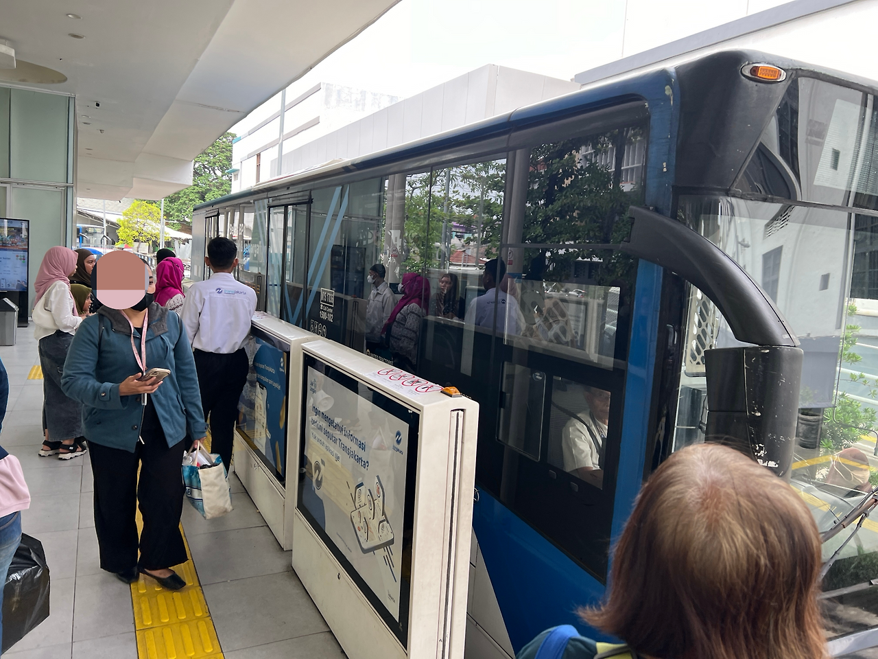 다시 자카르타역으로 돌아와 버스 타는 길을 따라가니 버스 정류장이 있는데 굉장히 특이하다. 2층 버스 같이 높다란 버스의 허리춤 정도에 해당하는 높이에서 승객이 탄다. 2층버스를 1층에서 타서 계단을 오르는 게 아니라 밖에서 2층에서 타는 것 같다고 하면 설명이 될까. 300원 정도를 내고 약 1시간 걸려 그랜드 인도네시아 쇼핑몰에 도착하게 될 것이다. Block M 방향으로 향하는 1번 버스를 탄다. 내리는 곳을 잊지 않기 위해 Bundaran, 하고 내리는 역 이름을 머릿속에 되뇐다. 전 정류장이 MH Thamrin이니까 그다음에 내리면 돼. 처음에 탔을 땐 사람이 거의 없어서 복도자리에 앉았는데, 점점 사람들이 타기 시작해서 안쪽 자리로 옮겼다. 안쪽 자리를 싫어하지만 어쩔 수 없다. 옆자리에 머리 길이가 어깨 조금 아래까지 오는 젊은 여자가 탔다. 옆자리 외국인인 나를 보고 그다지 친절하고 반가워하는 뉘앙스는 아니다. 할머니들도 있고 학생들이 굉장히 많다. 소년 소녀들을 보니 밝고 명랑하고 경쾌한 에너지가 전해져서 좋다. 대중교통을 타면 현지인들을 관찰하는 게 재밌다.