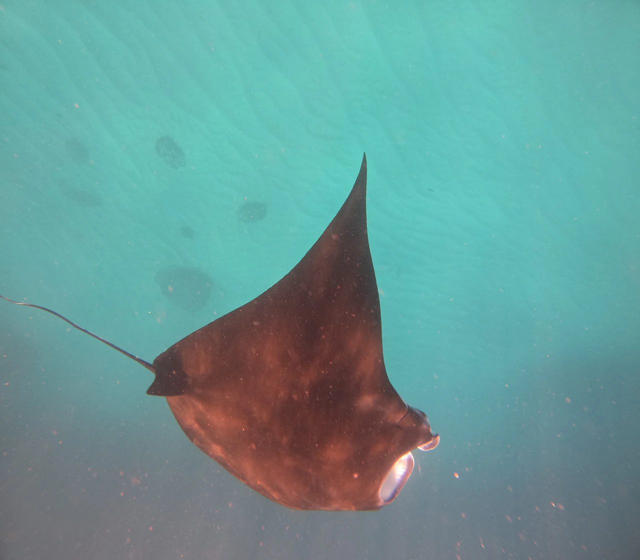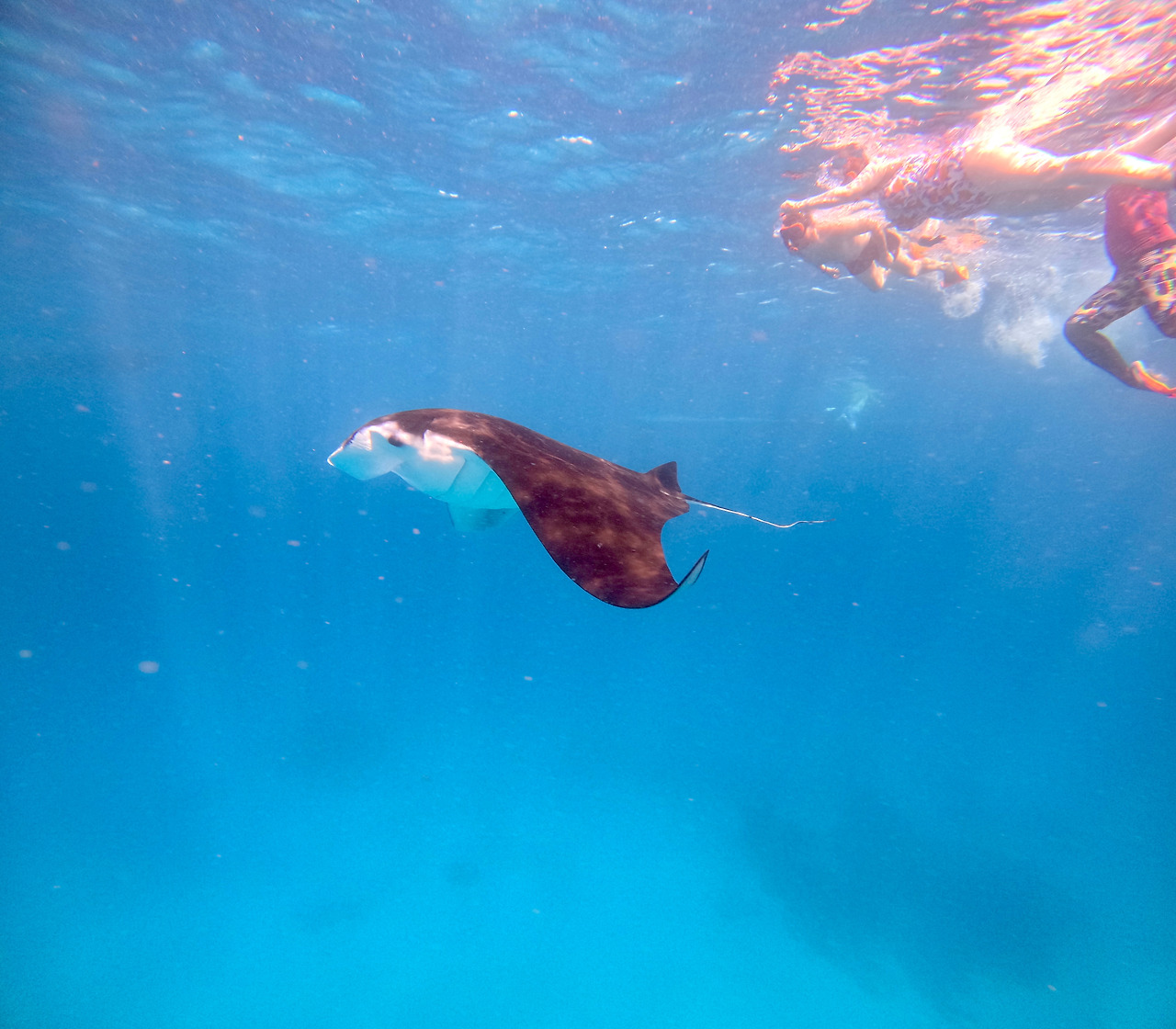 첫 번째 포인트는 만타 가오리를 볼 수 있는 만타 베이이다. 페이스북 그룹에서 갔다 온 다른 여행객들의 후기로는 만타 가오리는 운이 좋아야 볼 수 있고 못 봐서 너무 아쉽다는 것을 많이 봤다. 아 그렇게 희귀하고 보면 좋은 해양생물인가? 난 그냥 원하는 것이 잠잠히 바닷속에 얼굴을 담그고 구경하는 게 전부였는데. 그런 귀한 기회를 만난다면 좋겠다, 했는데 만타 가오리를 정말 자주, 많이 보았다. 가이드가 나타날 때마다 신호를 줘서 모이게 해서 다 같이 볼 수 있었다.
