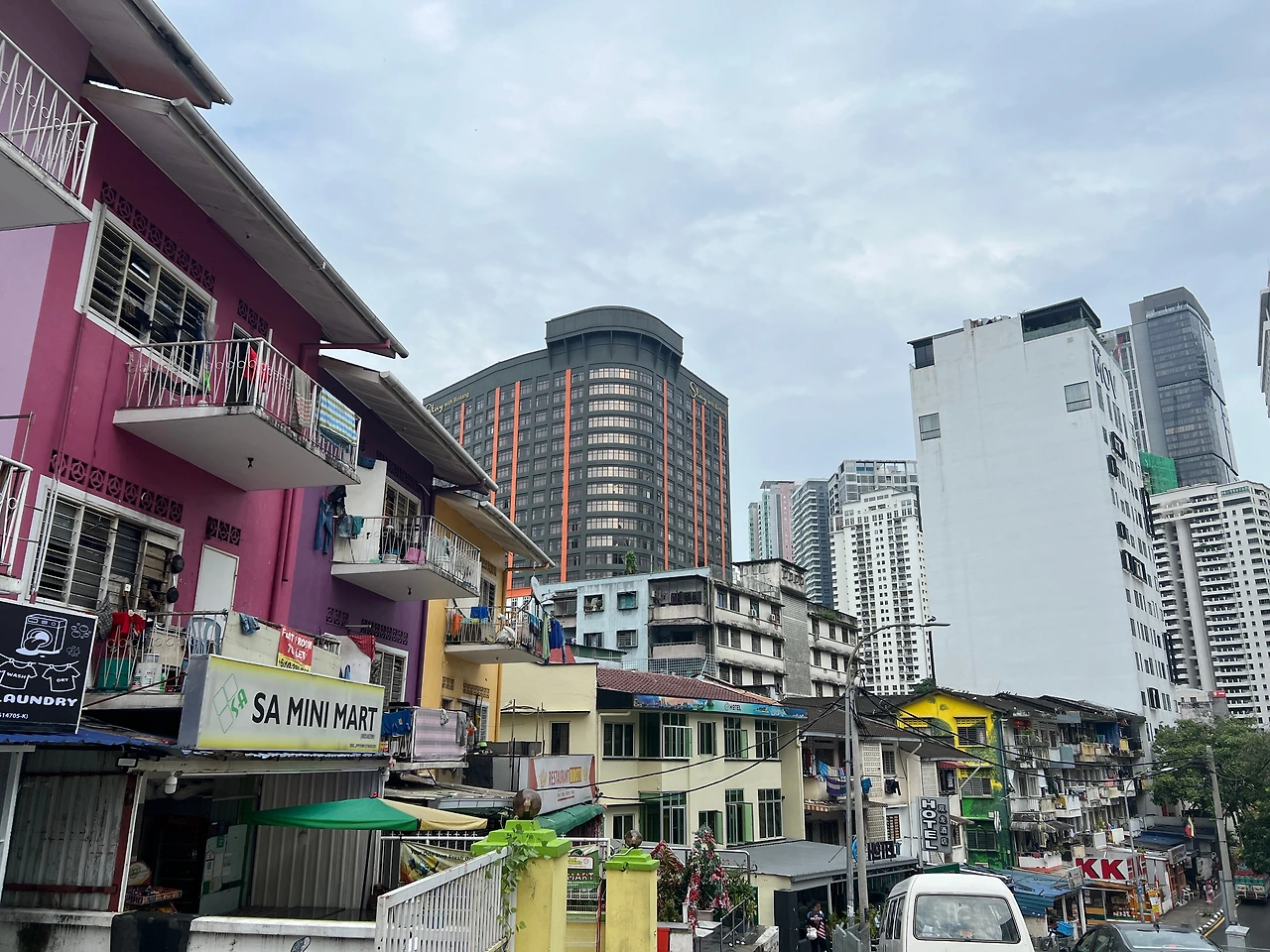 부킷 빈탕역까지는 몇 정거장 안된다. 다행히 자리가 많아서 앉아서 가는데 낮의 풍경이 새롭다. 엄청 세련되고 어마무시한 고층 빌딩과 적당히 낡고 오래되어 보이는(너무 기울어져 가는 판자촌이 아닌) 건물들이 조화롭게 보이면서 모노레일을 타고 건물 풍경 사이들을 지나간다. 모노레일을 타고 빌딩 숲을 지나다니니 미래도시에 온 것 같다. 도쿄 같기도 한데 인종이 확 달라지니 어두운 SF 영화 속에 들어온 것 같기도 하다. 정이, 이던가 뭐였던가 재미없어서 1,2화 보다 만 그런 영화 속에 들어온 것 같다. 미래인데 뭔가 망하고 암담한 미래.