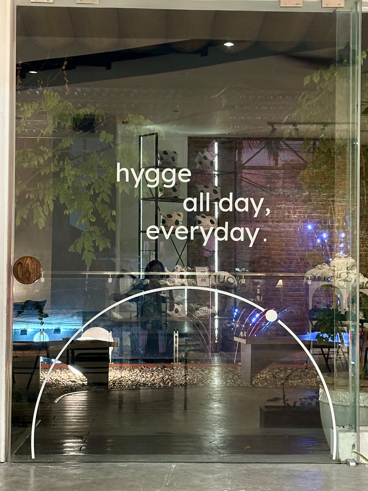 힙한 음악과 넓은 공간이 있는 카페였다. 이런 데를 어떻게들 알고 찾아 오지? 영어가 유창한 베트남 소녀가 안내 팻말 앞으로 데려가더니 어떤 클래스에 참여하고 싶냐고 물었다. 내가 7시에 예약을 했다고 하면서 메시지 대화를 보여주는데 잘 모르는 눈치다. 아, 내가 대화한 사람이 이 사람이 아니구나. UV 페인팅은 7시 이후에 시작하니 내가 30분 정도 일찍 도착해서 음료를 마시며 기다리라고 했다. 베트남 여자들 세 명이 아크릴 페인팅으로 파란 배경에 해파리를 그리고 있었다. 오늘의 예시 그림은 해파리인가 보다. 나는 카운터에 가서 음료를 하나 골랐다. hygee all day, everyday라는 문구가 좋았다.