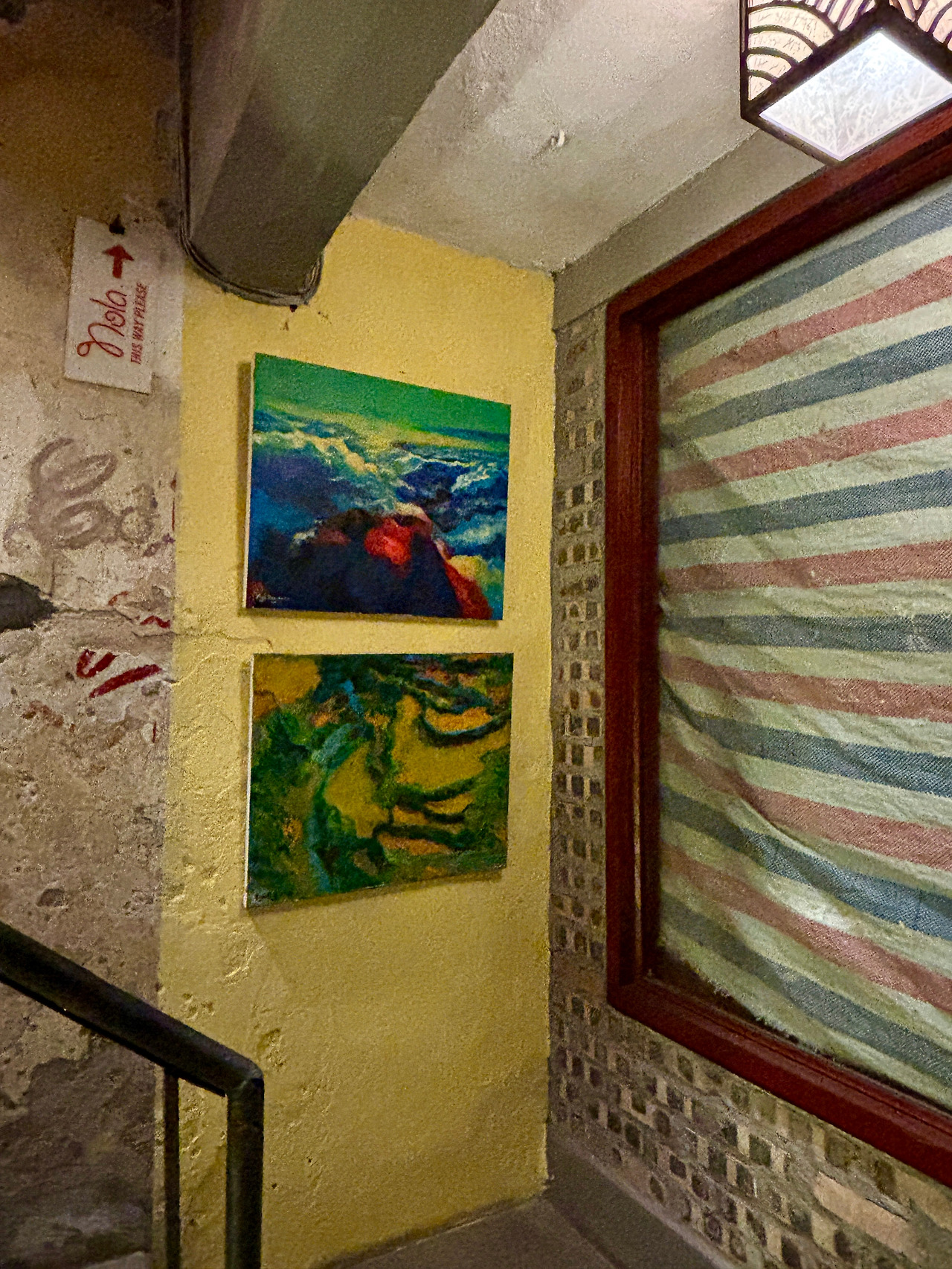 페인팅 클래스 소녀가 알려준 팝업 전시도 갔었다. 나에게 전시에도 관심이 있냐고 하며 인스타그램에서 요즘하고 있는 전시 동영상을 보여주더니 가보면 좋을 것 같다고 했다. 오바마 분짜에서 7분 정도라 주소를 찍고 걸어가는데 너무 예쁘고 알록달록한, 갑자기 모스크바의 테트리스 성당이 떠오른 건물이 나타났다. 예쁜 것을 보면 갑자기 기분이 좋아진다. 그런데 철창으로 닫혀 있다. 자세히 보니 12-2시까지 문을 닫았다. 근처에 껨보 전문점이 있어서 가서 열 때까지 맛있는 껨보를 먹으며 글을 쓰며 시간을 보냈다.