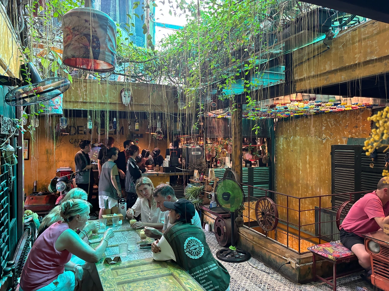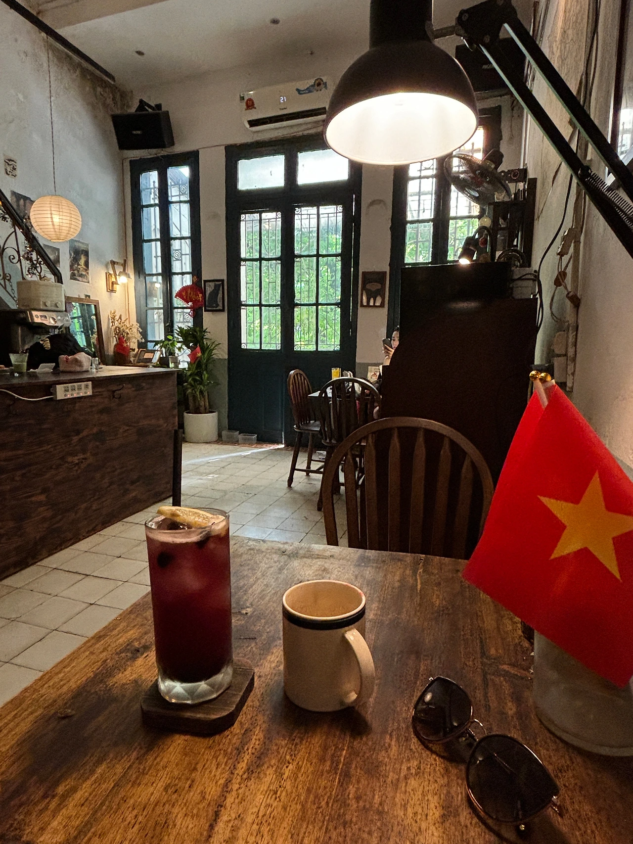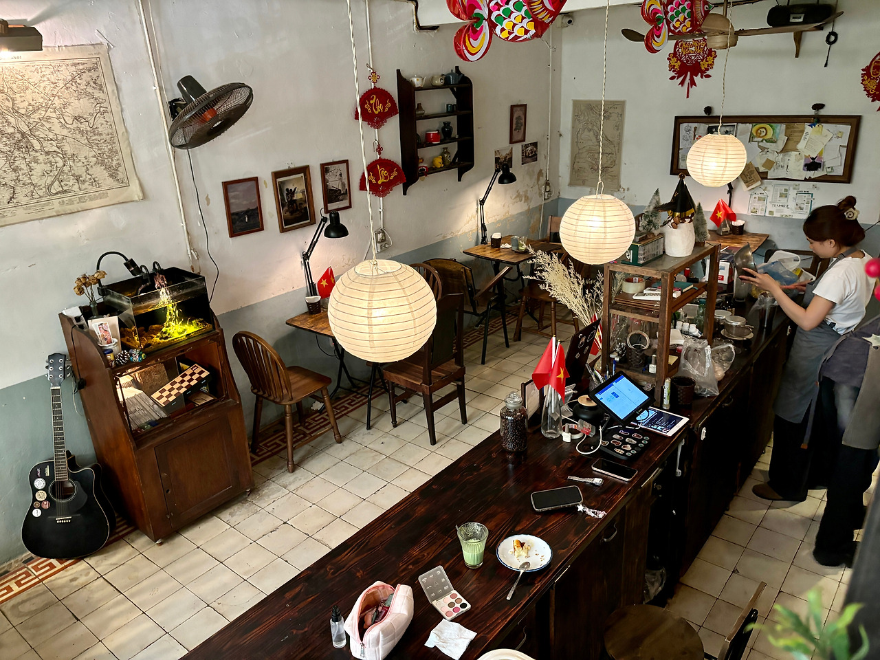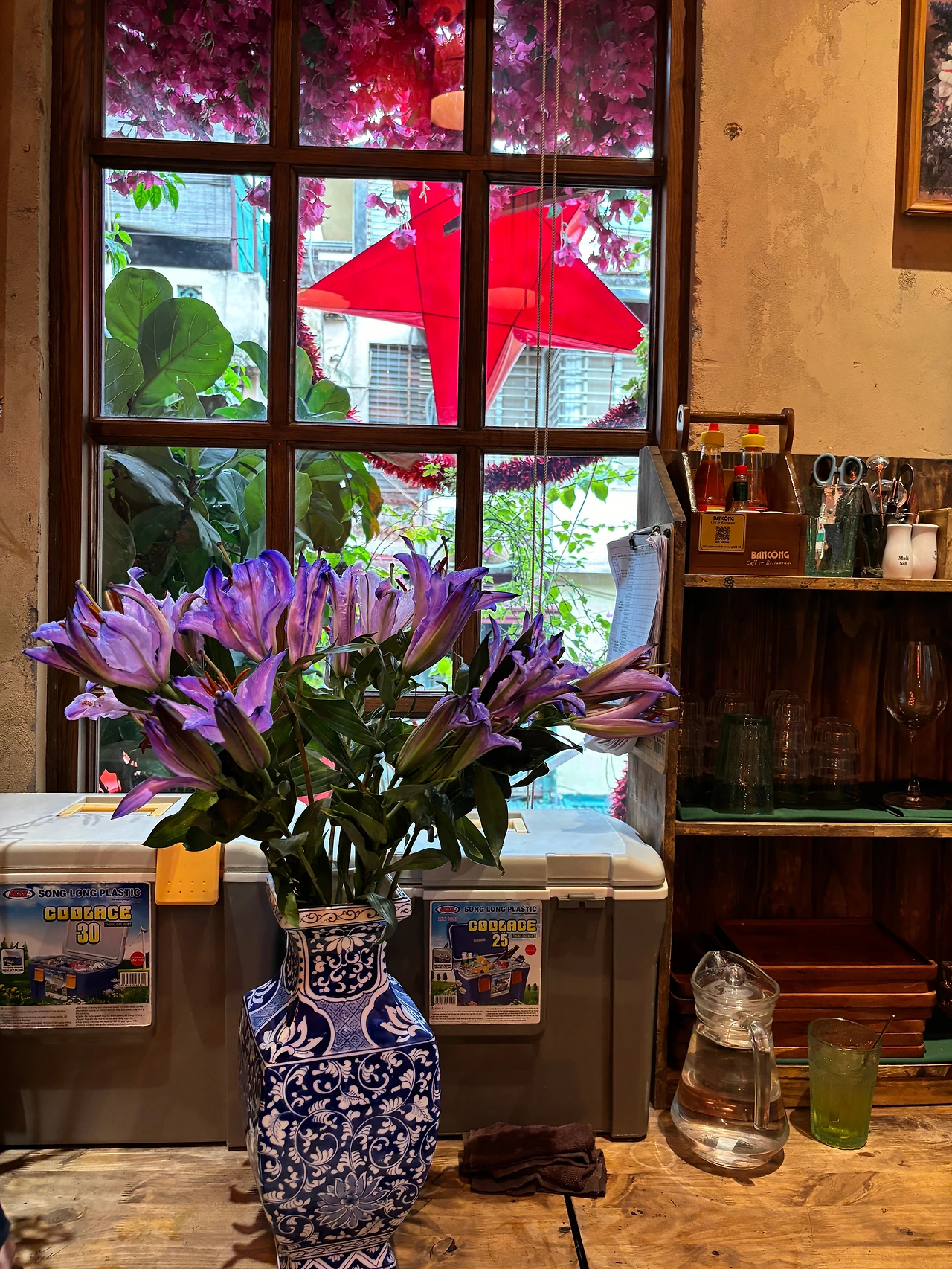 하노이 건물들은 프랑스 식민지 시대 건물이어서 그런지 알록달록하고 길쭉길쭉하다. 창문도 길쭉길쭉 층고가 높아서 유럽 같은데 낡아서 동유럽 같다. 예쁜 카페들은 을지로 감성이어서 마음에 든다. 구글맵으로 찾아가는데 한 번에 못 찾는, 상점 문 틈 사이에 작고 낡은 골목을 따라 화살표를 따라 좁은 계단을 따라 올라가면 있는 카페들. 안에는 예쁜 그림과 인테리어, 꽃들이 있기도 하고 어두운 조명과 감성 있는 힙한 음악이 흐르기도 하며 어떤 곳은 20대 현지인들이 노트북을 가지고 와 작업을 하는 사람이 많고 어디는 백인 관광객이 많기도 하다. 가만히 혼자 앉아 주위의 다른 사람들을 관찰하고 음악을 듣고 생각을 하고 글을 쓰면 금방 2시간이 지난다. 베트남의 어린 카페 직원들은 중국과 달리 영어가 잘 통한다.