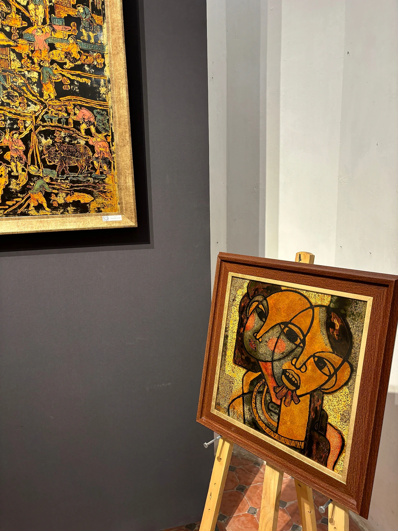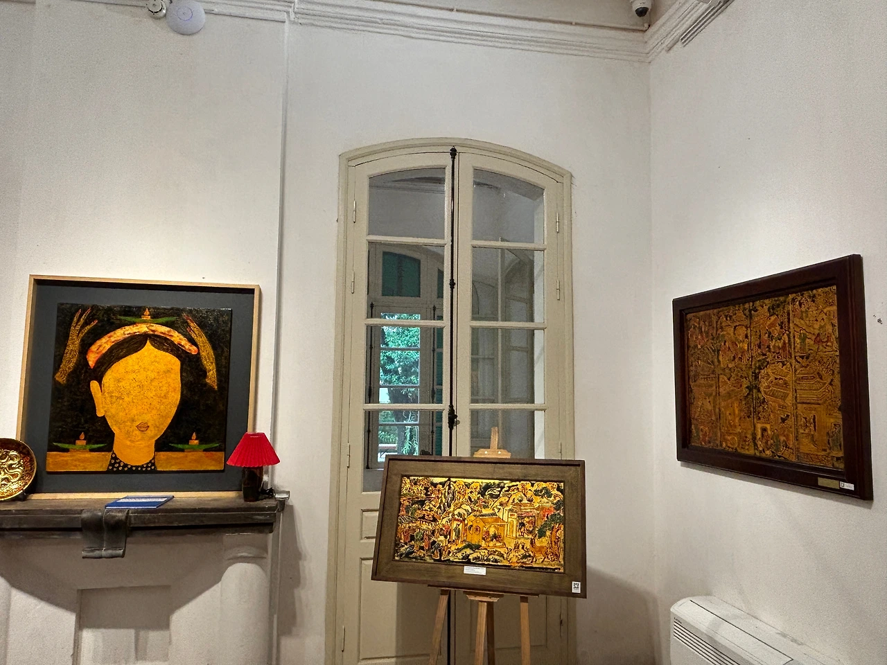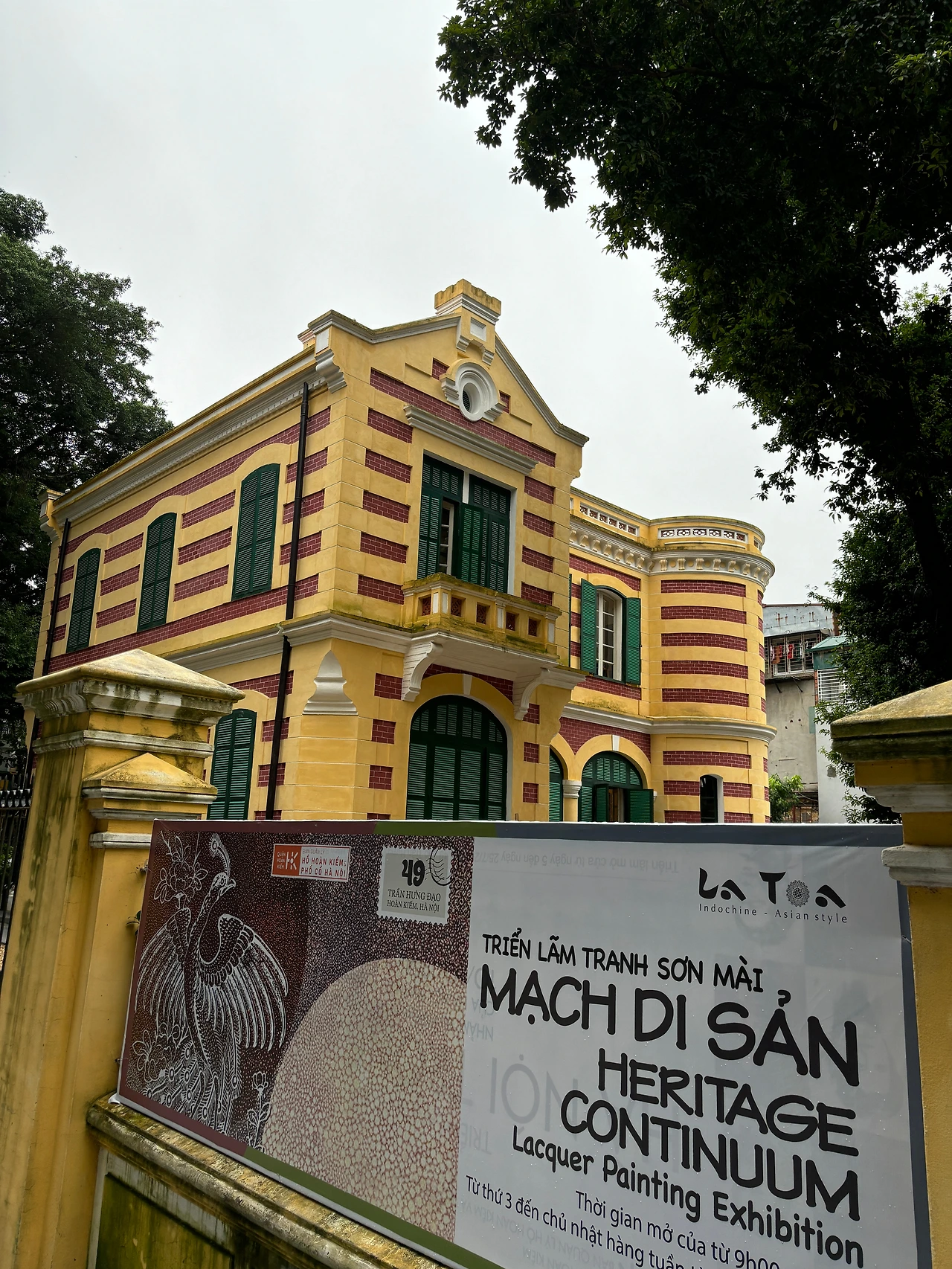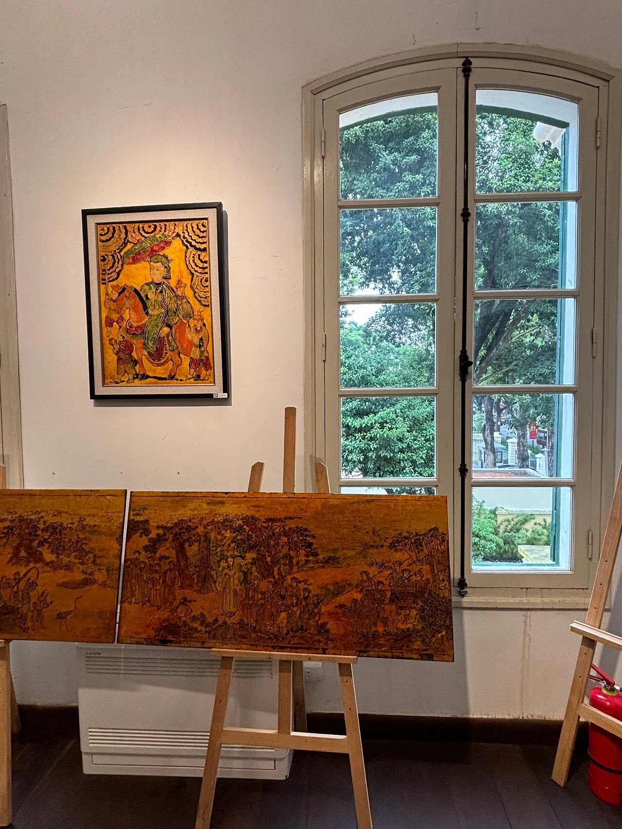 2시 5분쯤 되어 도착하니 문이 열려있고 젊은 베트남 아가씨들이 구경을 하고 서로 사진을 찍어주고 있다. 건물이 예뻐서 그 자체로도 좋았다. 건물 안에 들어가니 황금빛으로 된 작품들이 있었고, 층고가 높고 창문이 유럽스러운 건물이 분위기 있다. 동글동글 굽이치는 계단을 따라 올라가니 작품들이 더 있다. 불교스러운 작품들도 있고 사람의 얼굴, 호랑이를 그린 작품도 있는데 구경하니 재미있고 좋다. 그림 전시를 보는 것을 좋아하는데 하노이는 갈 만한 곳이 없어서 아쉬웠는데 이렇게 시간을 보내니 행복했다.