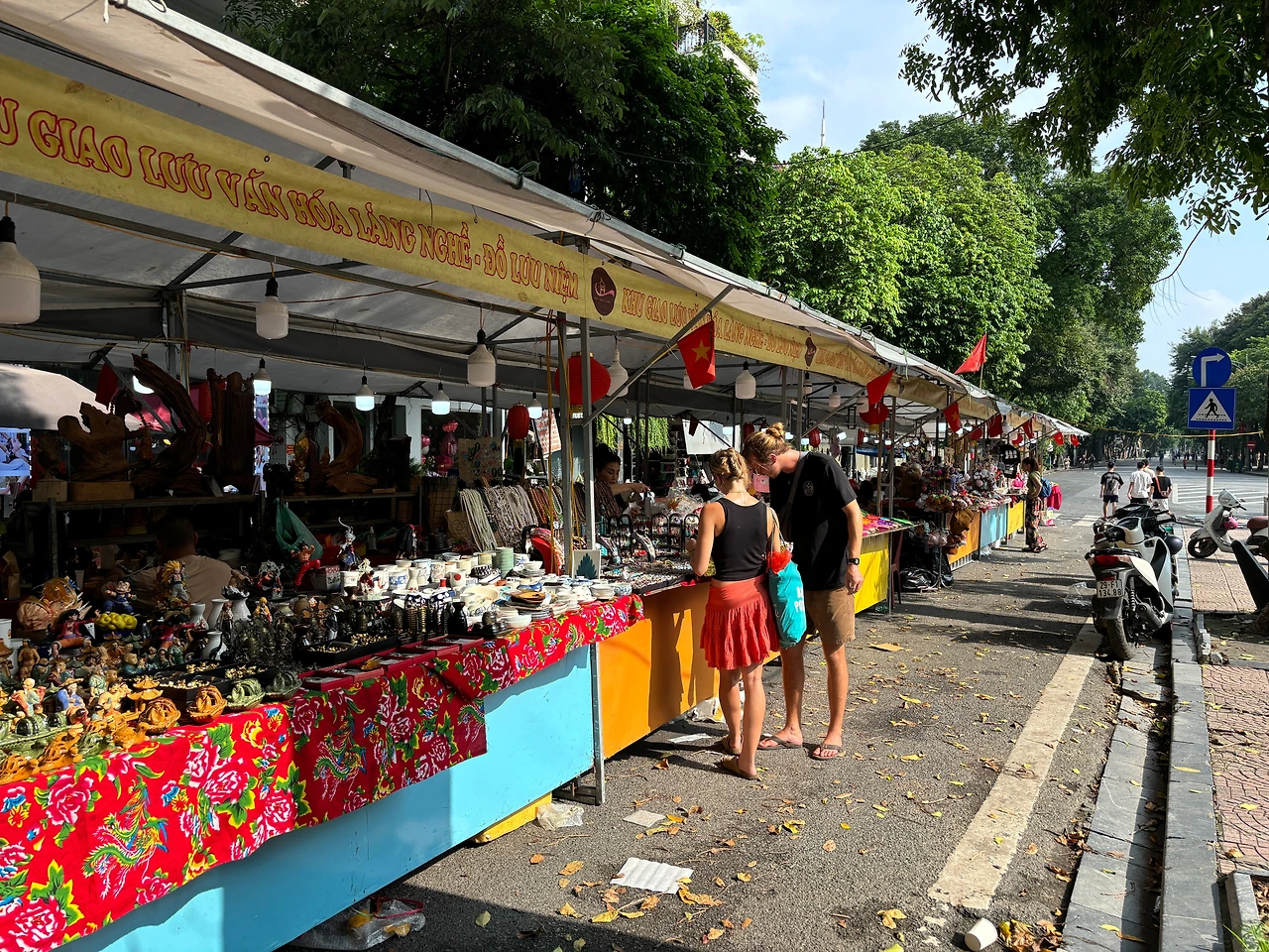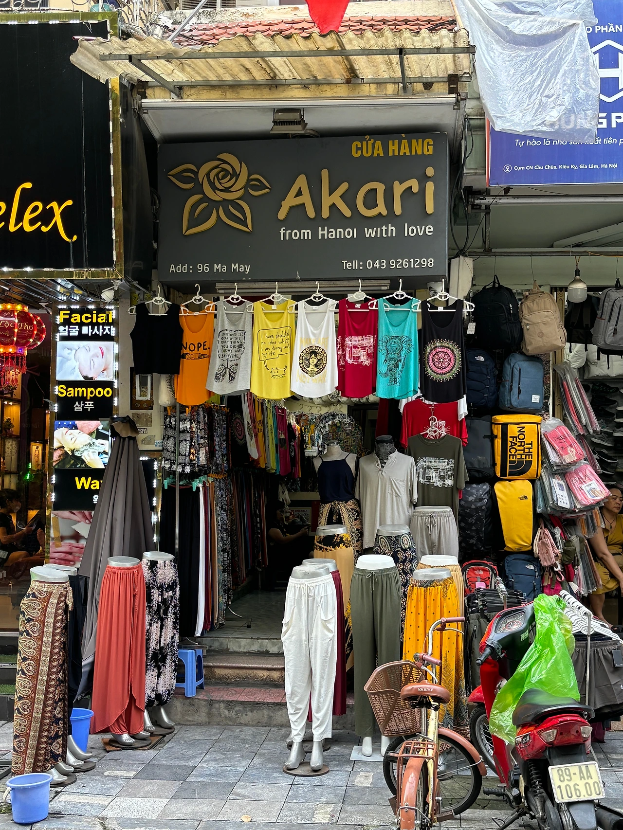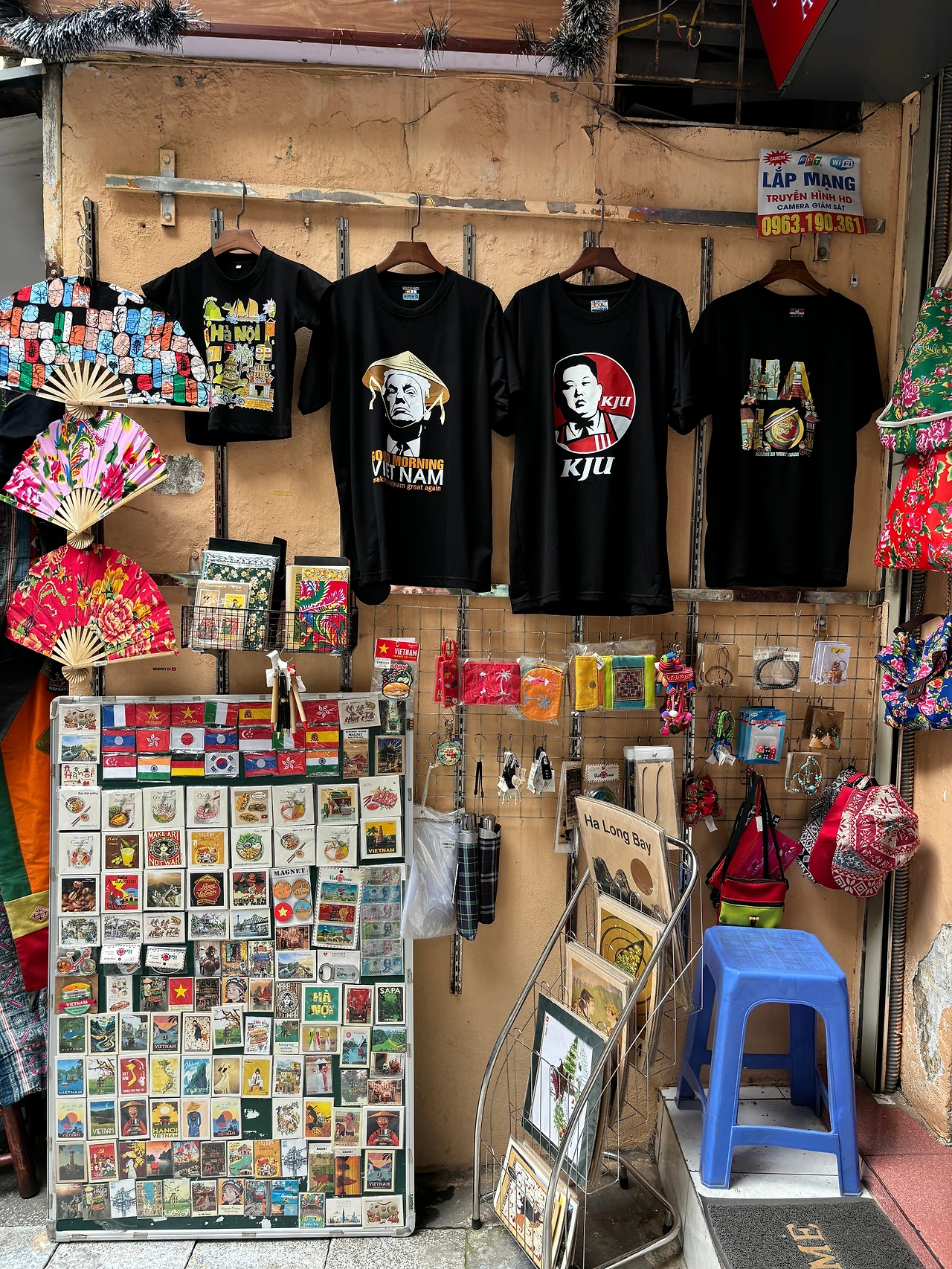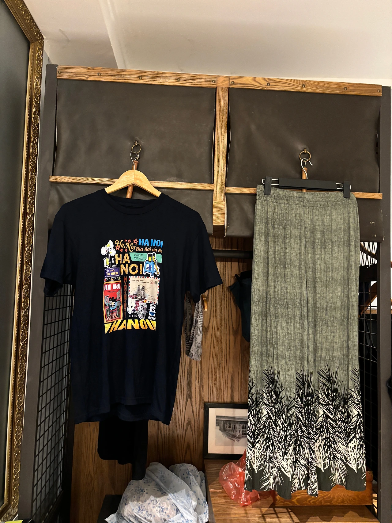 나는 make art not war이라는 감각적인 느낌의 티셔츠와 알록달록한 하노이 그림이 그려진 관광객 티셔츠를 샀고 둘 다 5천 원 정도. 운동할 때 막 입으려고 샀다. 얼굴에 잘 받기도 하고 노브라로 입기 좋아서 까만 티를 사는 편. 칠부 레깅스를 사고 싶었는데 반바지 긴바지 레깅스만 있어서 결국 안 샀다. 카키색, 라벤더, 핑크색 등 예쁜 색 레깅스들이 많아 살까 하다가 카키색 하나 사 올걸 하고 후회했다. 다음에 베트남 가서 또 사지 뭐!