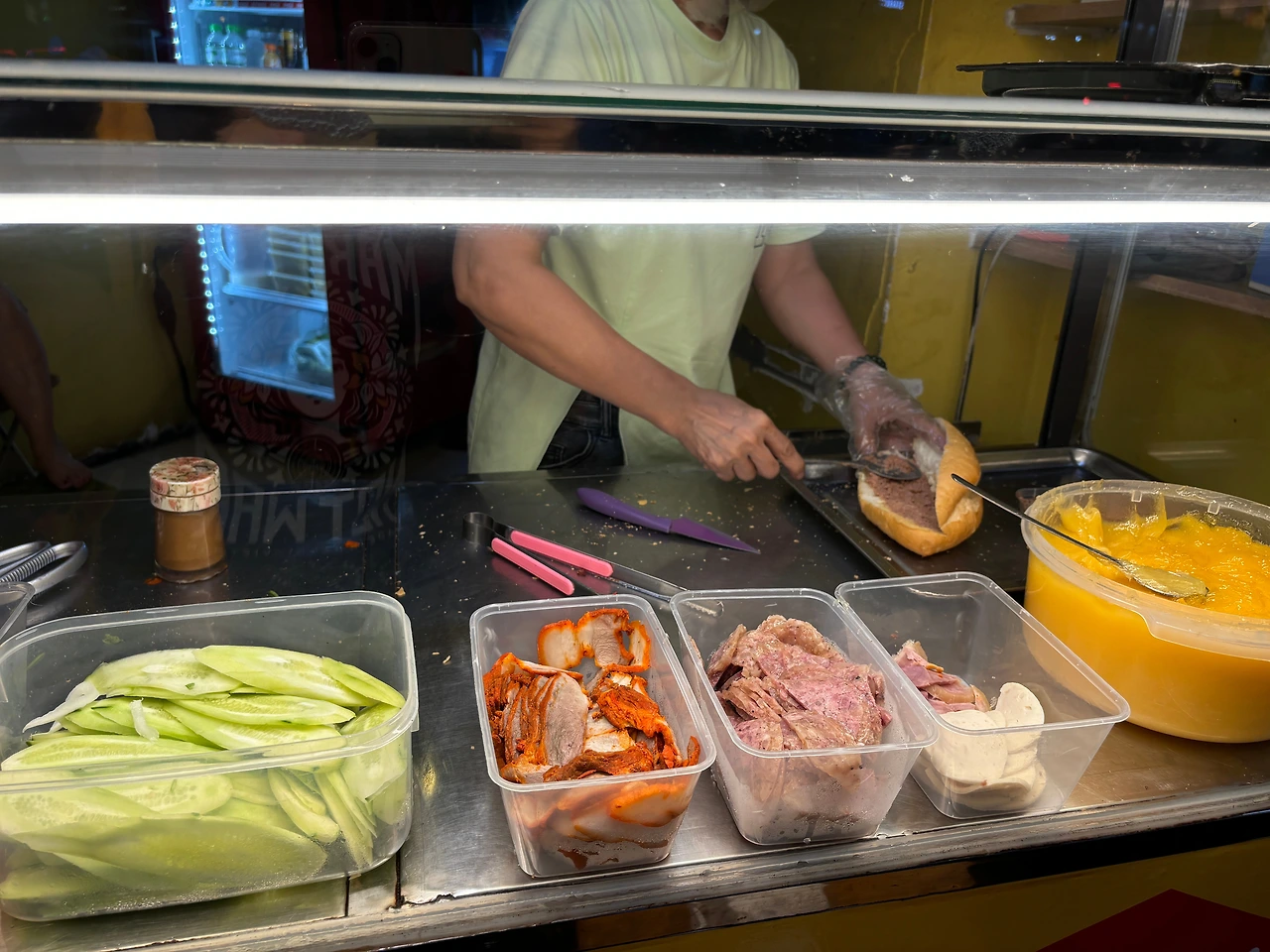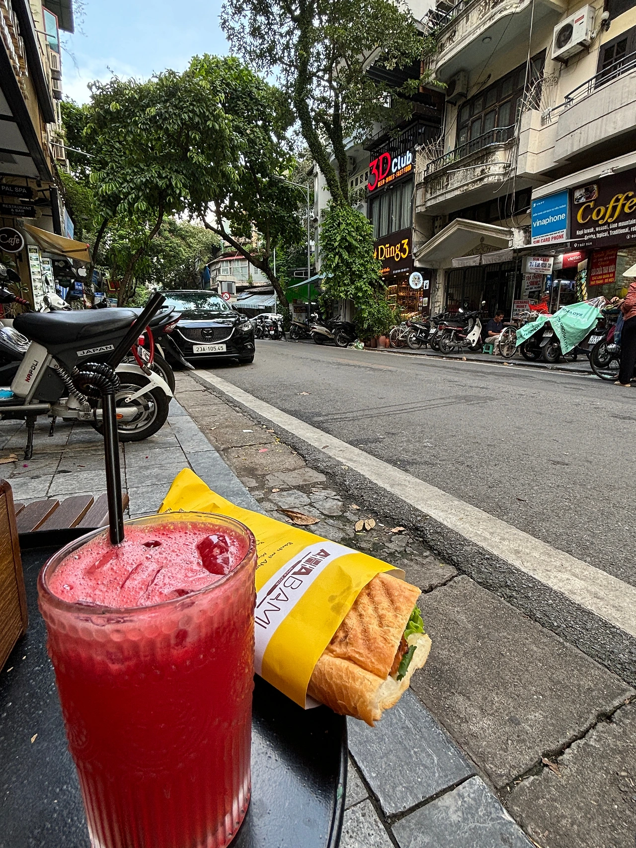 바게트 빵에 이것저것 넣어주는 반미는 집집마다 빵도 들어가는 재료도 소스도 달라서 집집마다 먹어보는 재미가 있다. 어떤 집은 빠니니처럼 꽉 바삭하게 눌러준데도 있고. 저녁을 먹고 싶지 않고 가볍게 먹고 싶을 때 근처에서 하나 사가지고 들어와서 먹은 날도 몇 번 있다. 유명하다는 반미집보다 그냥 우연히 길에서 만나서 먹은 반미가 더 맛있다. 가격은 1500원에서 2500원 정도로 싸고 맛있다. 수수료 없이 뽑는다고 vp bank를 찾아갔다가 호텔로 돌아오는 길에 만난 반미 집이 제일 맛있었는데 편육 같은 게 들어있어서 식감이 쫄깃하고 소스와의 조화도 정말 좋았다. 반미 하나 달라고 하는데 핸드폰을 하고 있던 주인아저씨가 손도 안 씻고 장갑도 안 끼고 바로 손으로 바게트를 잡아 재료를 넣어준 게 찝찝하긴 했지만 동남아에 왔는데 싸게 먹는데 어쩔 수 있겠나, 하고 포기했다.