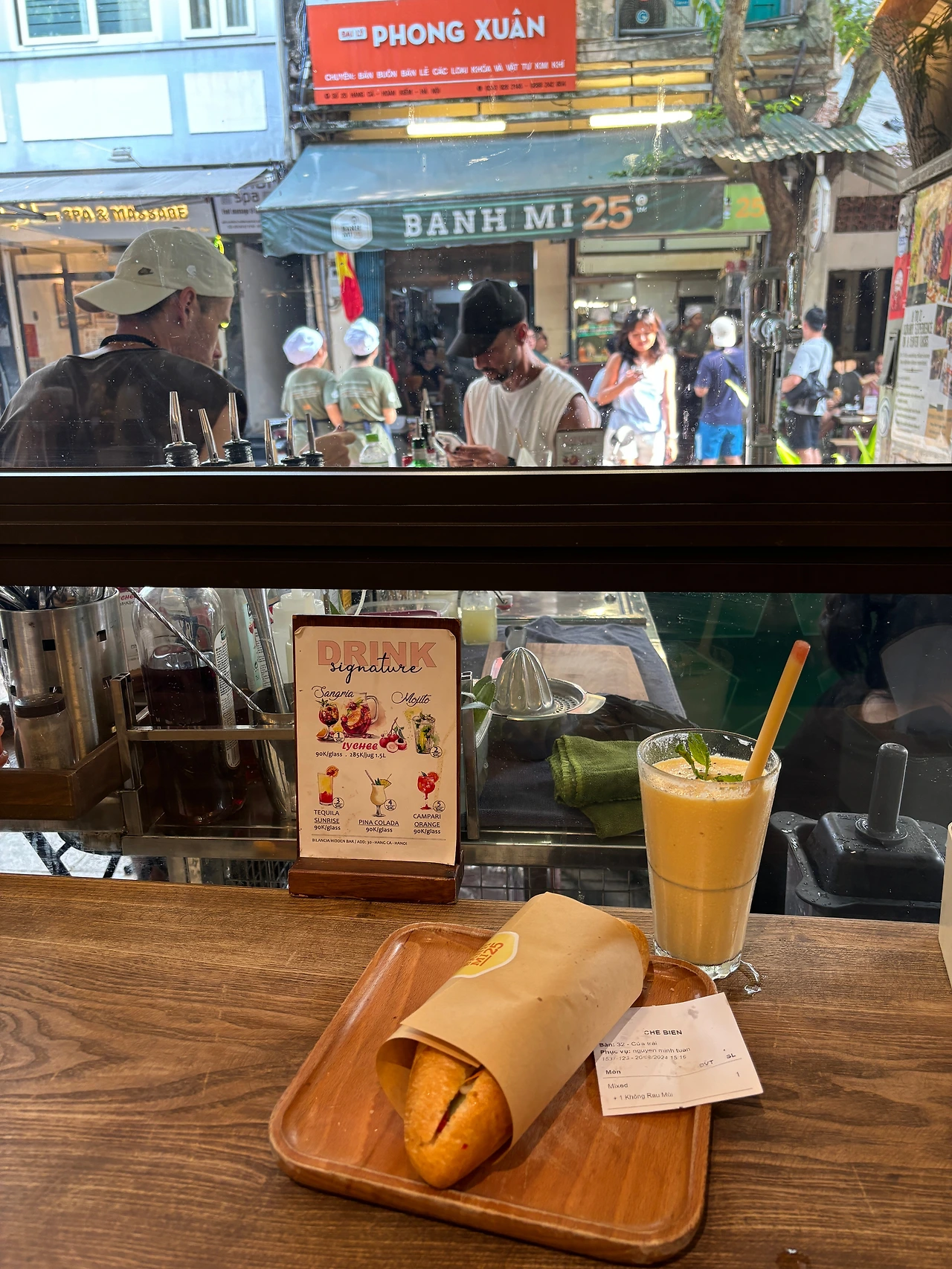 베트남 대학생이 추천해 준 반미 25는 특별한 맛은 아니지만 사람이 엄청 많고 유명하다. 굳이 가볼 맛은 아니지만 호불호 없는 깔끔한 맛에 백인 여행객들이 가득해서 뭐랄까 좀 외국온 느낌을 받을 수 있다. 나도 같이 백패커가 된 느낌. 붐비는 떠들썩한 분위기 속에 있는 것도 재미있고 좋다.