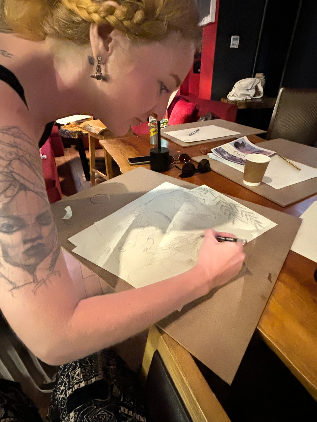 UV페인팅 말고 주말 동안 시간을 보내기 위해 찾다가 페이스북에 하노이에서 열리는 이벤트를 알려주는 페이지를 찾았다. 그중에 드로잉 워크샵이라는 페이지가 있어서 예약했는데 이런 건지 몰랐다. 그랩을 타고 한 카페에 들어가니 나체인 베트남 여자가 무대에 앉아있고 사람들은 그림을 그릴 준비를 한다. 나는 물감으로 그림을 그리는 클래스를 상상하고 왔는데 나체인 여자를 보고 그림을 그리는 거였다. 아, 잘못 왔다. 역시나 지루했다. 잘 그리지도 못하는데 난 구도 잡고 디테일하게 그리는 거 못하니 시간은 보내야겠고, 얼굴만 그린다던가 옆에 나뭇잎이나 그리고.
