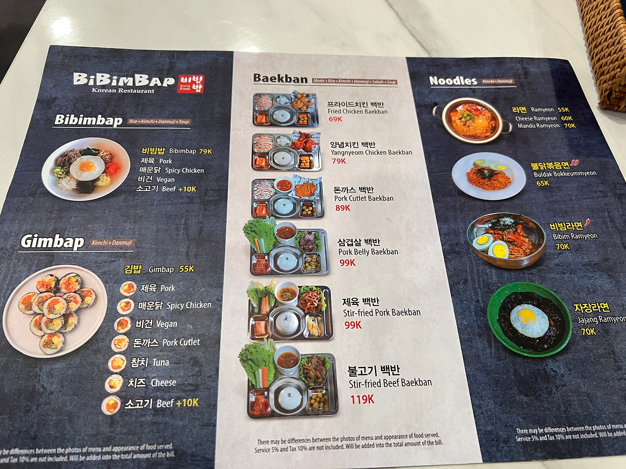 메뉴판을 보는데 한국 물가에 비해서도 비싼 느낌이 있지만 외국에서 먹는 한식만큼 비싸지가 않다. 떡볶이를 먹고 싶은데 김밥하고 같이 시키자니 만원이 넘어서 그럴 바에 밥을 먹자, 하고 제육 백반을 시켰다. 한국인은 없고 인도네시아인 직원들이 서빙을 해 준다. 음악은 블랙핑크 노래가 나온다. 한국인인 나도 블랙핑크 노래를 일부러 유튜브 등에서 찾아서 본 적도 없지만 해외에서 이렇게 유명하고 좋아하다니 신기하다.