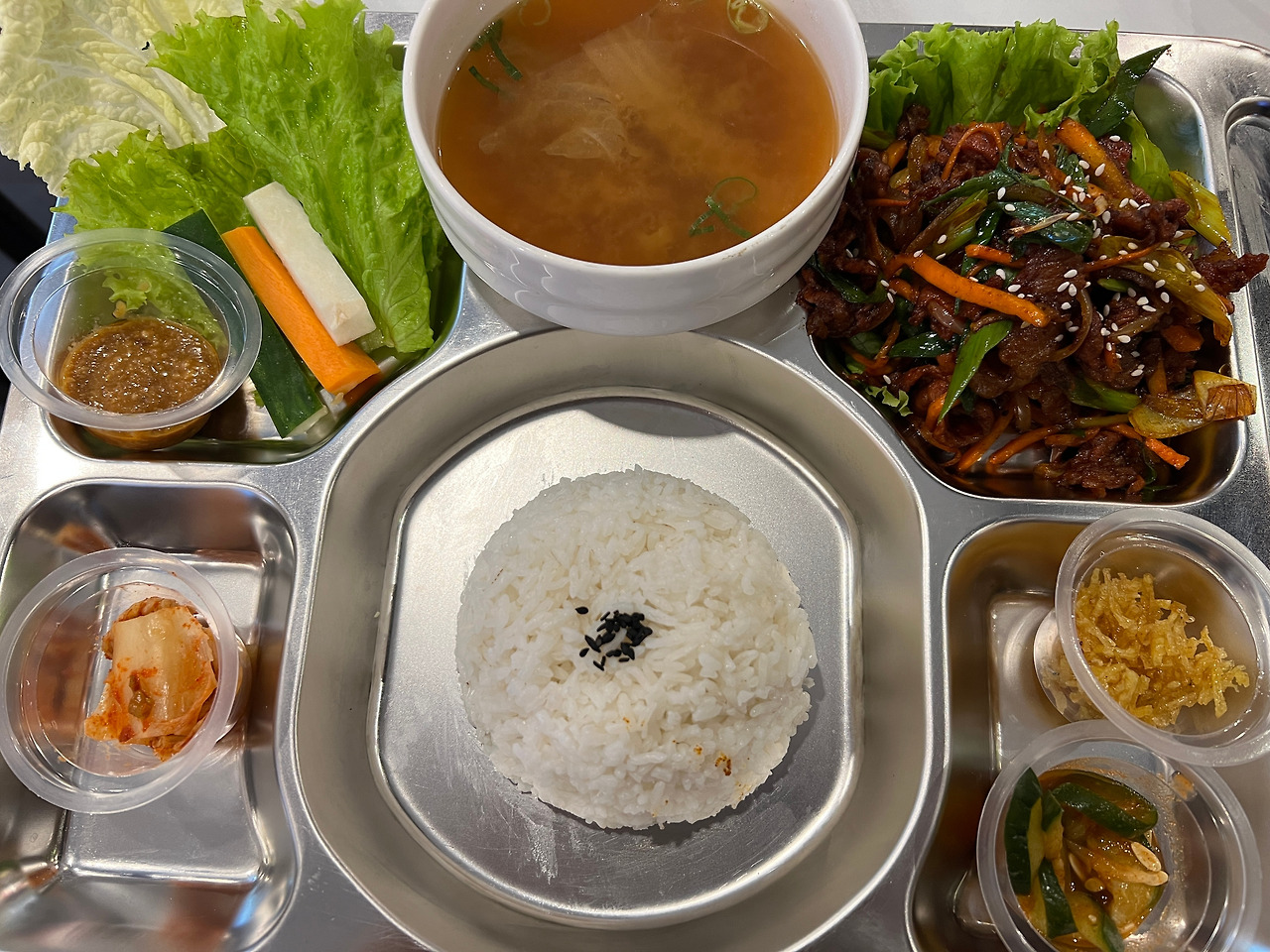 마른 인도네시아 청년이 상냥한 미소로 나의 제육 백반을 가져다준다. 한국에서 조달한 건가, 반찬도 맛있고 밥과 국물도 맛있고 제육볶음도 맛있게 먹었다. 고기 부위가 연하고 소스도 맛있고 양파 등 야채가 많이 들어서 조화롭고 맛있다. 하긴 소스 같은 건 직접 안 만들어도 만들어진 걸 구하기가 쉬워진 세상이니 한국 식당에서 파는 맛을 재현하는 게 어렵진 않을 듯.