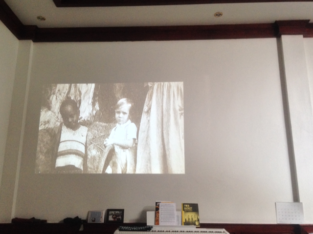하루는 이웃에게 빌린 기계를 이용하여 거실 한쪽 벽면에 영화를 쏘아보았다.