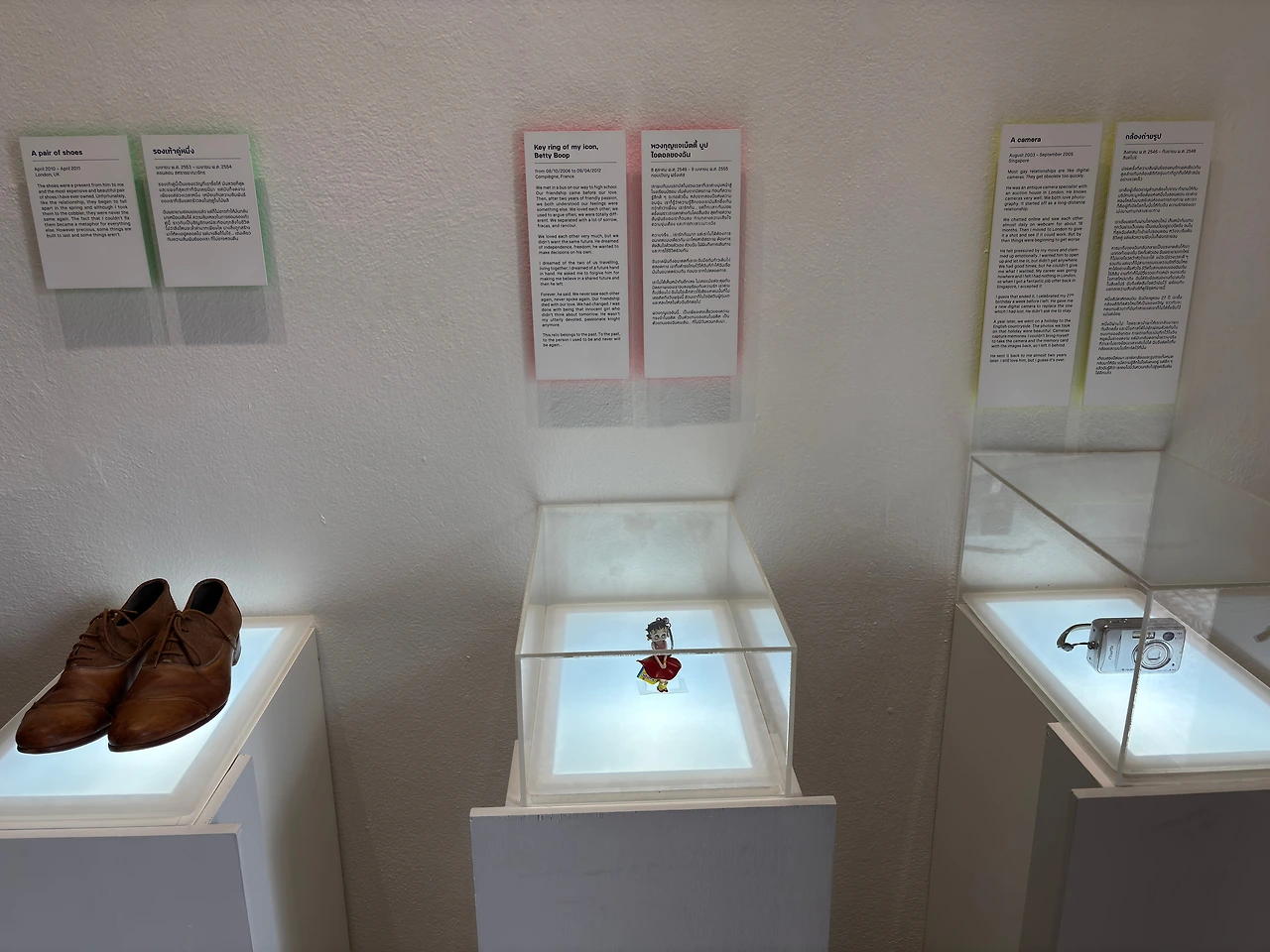 이별 박물관이라고 해야 하나, 실연 박물관이라고 해야 하나. 크로아티아 자그레브와 태국 치앙마이 이 두 곳에만 있다고 해서 치앙마이에 있을 때 와본 게 뭔가 되게 특별한 경험을 한 것 같다. 그리고 그 아이디어가 너무 좋아서 한국에도 이런 박물관을 열면 좋을 것 같다고 생각했다. 이별과 관련된 물건과 이야기를 기부받아 전시하는데 전 세계 사람들의 이야기가 있다. 무슨 웨딩드레스, 작은 인형, 그림, 테니스공, 가방, 돌아가신 할머니의 추억이 가득한 소품 등 다양한데, 한국에서 온 이야기도 있어서 반갑다.