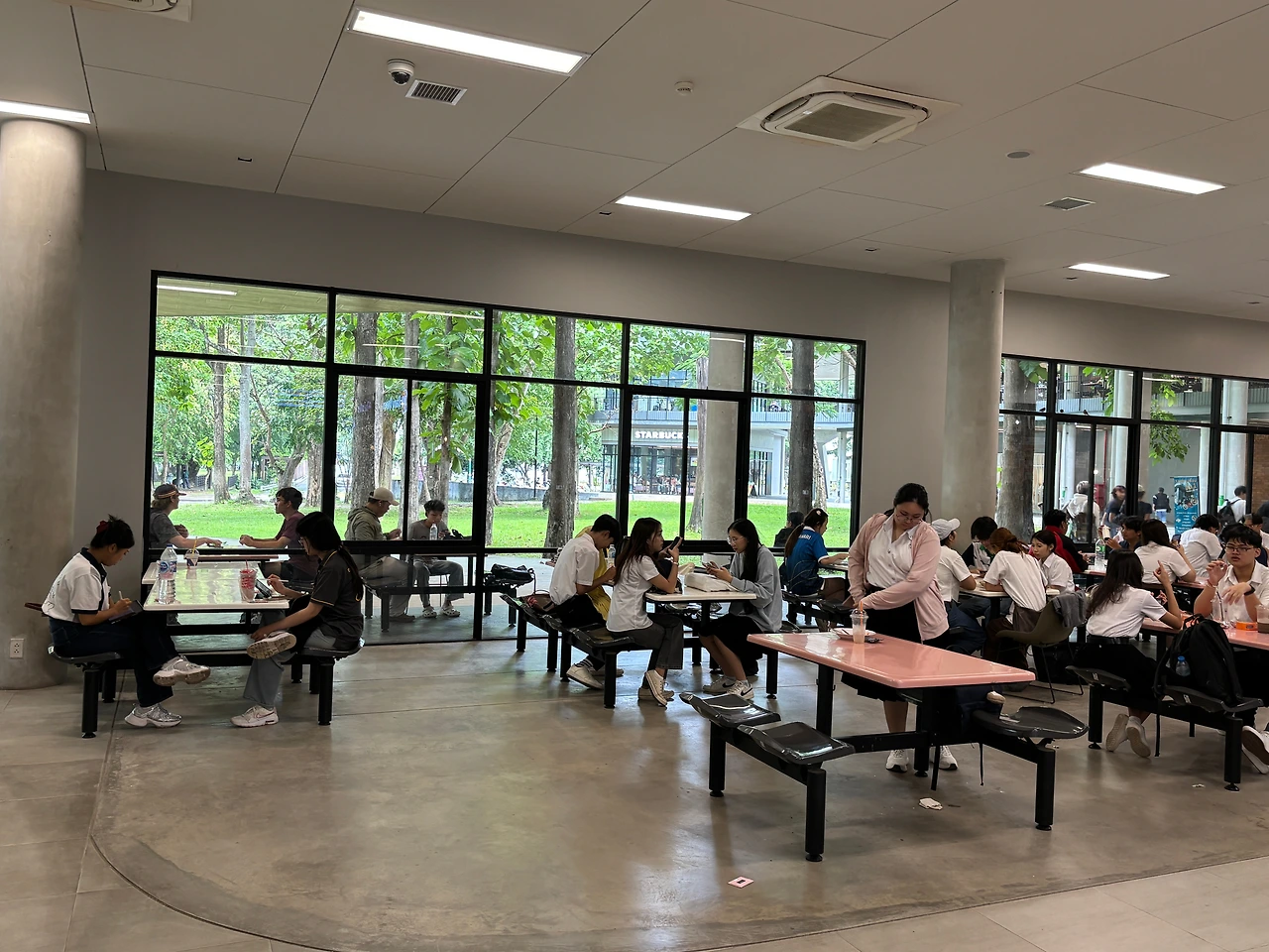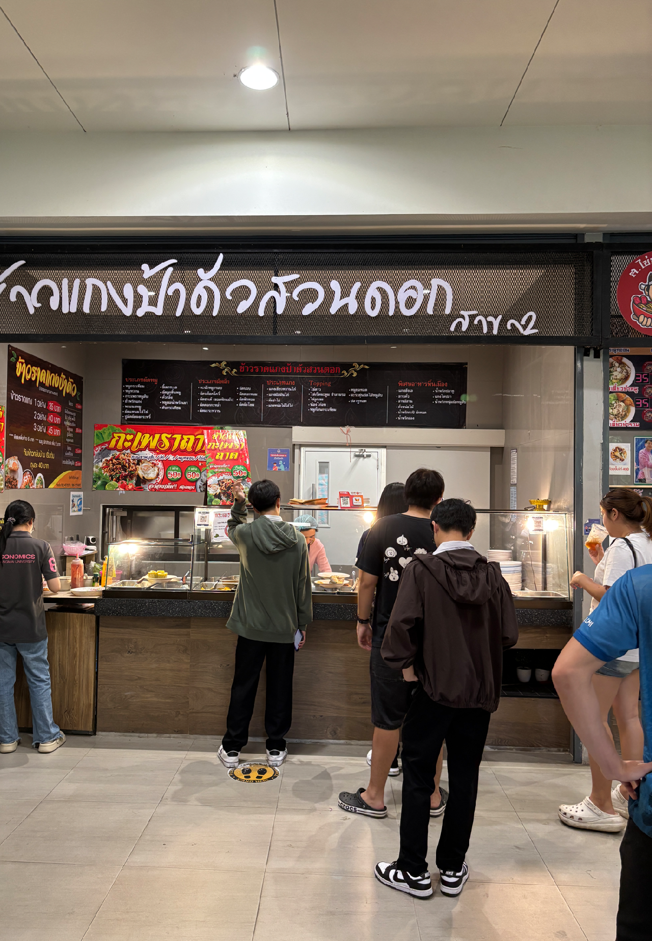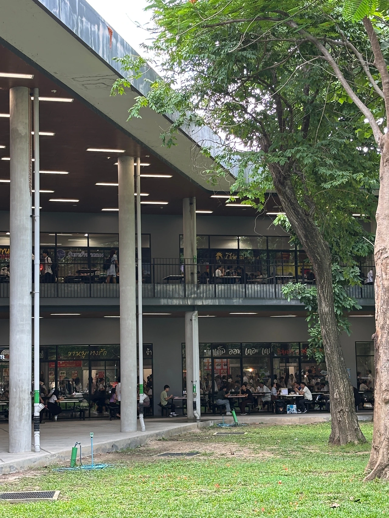 아저씨가 푸드코트의 어떤 지점에서 내려줄지 손짓을 하길래 아, 그냥 여기 내려 주세요,라고 했다. 학생 식당도 엄청 크다. 교내에 스타벅스도 있네. 우린 없는데. 치앙마이는 워낙 좋은 카페들이 많다 보니 스타벅스를 굳이 한 번도 가지는 않았다. 더워서 잠깐 에어컨 쐬고 기념품 같은 걸 구경하러 들어갔었는데 음료가 역시나 비싸다. 스타벅스를 지나 학생 식당 쪽으로 걸어가는데 와, 사람이 진짜 많다. 여기는 방학이 아닌가? 그리고 와 학생 식당 뷰가 왜 이리 좋아. ㄷ자로 된 학생 식당 건물이 감싸고 있는 중정에는 엄청 큰 나무들이 또 초록초록한 뷰를 보여주는데 치앙마이 대학교 학생들은 밥 먹을 때도 자연 속에서 릴랙스 할 것 같다. 그래서 그런지 다들 표정이 밝고 안정적이여 보인다.