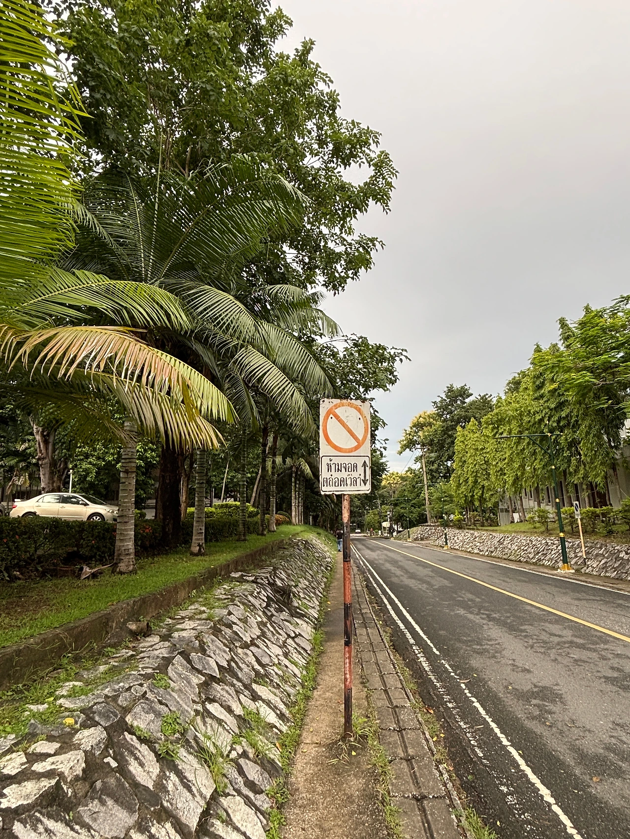 정문으로 가는 길에 너무 멀지는 않을까? 하고 걷기 시작했는데 10분 안 걸리는 나름 가까운 거리다. 정문으로 향하는 인도에는 역시나 올려다 보기에도 끝도 없는 나무들이 촘촘하게 있다. 이런 자연에 둘러싸여 있는 캠퍼스 생활이라니. 치앙마이대학교에서 외국인 박사생도 있으려나. 치앙마이대학교에서 박사를 하면 다들 바보 같다고 하겠지. 근데 뭔가 육아하면서 박사 하기에 좋을 곳 같기도 하다는 생각이 들었다. 치앙마이는 어린이 영어교실이 잘되어 있고 인터내셔널 한 환경이라서 한국 엄마들도 방학에 애들 데리고 한 두 달 오는 분들이 많아 보인다. 애들이 그림 그리고, 무에타이 배우고 게다가 국제 환경 속에서 여러 나라 사람들과 섞여 있으니 새로운 자극이 될 것이고. 그런데다 애들 몇 시간 넣어 놓고 엄마들은 요가를 가거나 카페 맛집에 가있는 듯하다.