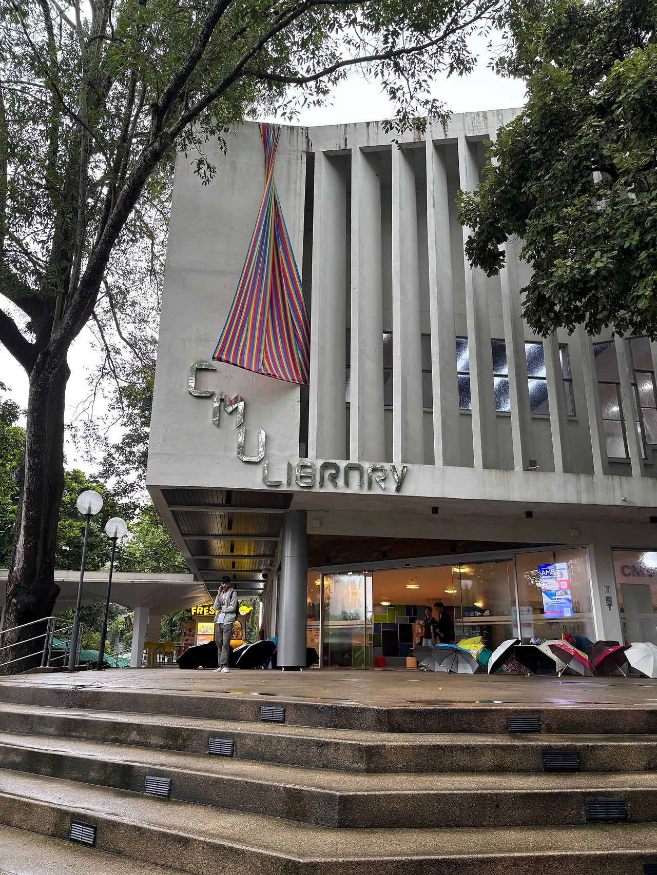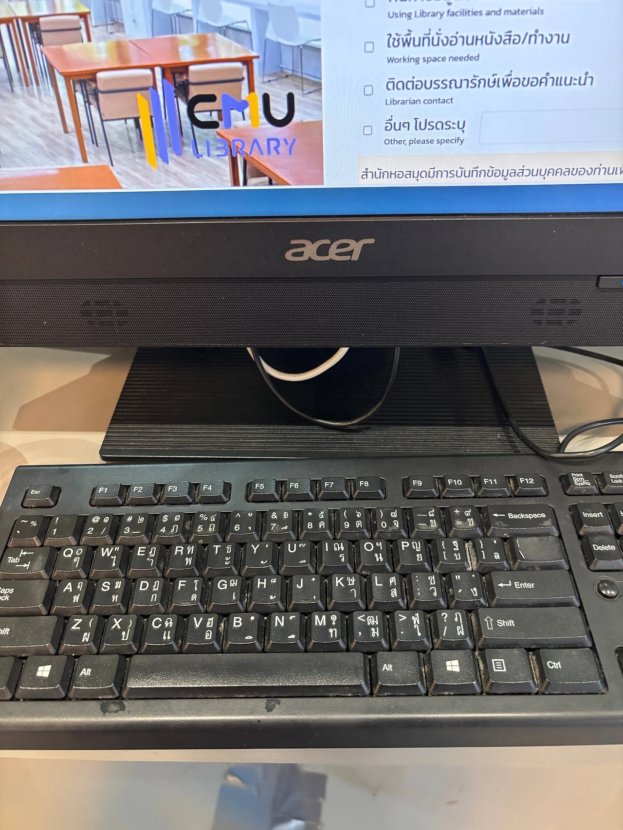 음료를 사갈까 둘러보다가 썩 내키는 음료를 발견하지는 못해서 그냥 일단 도서관에 가보기로 한다. 도서관 가는 길에 비는 내렸지만 중간중간 길에 비를 막아주는 구조물이 있어서 별로 젖지는 않았다. 쿠알라룸푸르에서 비가 내렸을 때 길마다 비를 막아주는 뚜껑? 이 있어서 비를 별로 맞지 않았던 게 떠올랐다. 곡선을 돌아 걷다 보니 금방 도서관이 보였다. Chiang Mai University Library라고 태국어 밑에 영어로 쓰여 있다. 와 대학 캠퍼스 느낌 난다. 입구 근처에 음료를 파는 곳도 있다. 입구에 들어서니 벌써 에어컨이 세서 춥다. 바람막이를 가져오기 잘했다. 들어가는 곳은 QR로 입장하는 곳이 있고 그 옆에 컴퓨터가 두 대 있어 외부인이 결제를 하고 QR을 인쇄할 수 있는 곳이 있다. 컴퓨터에 이름과 전화번호, 이메일, 방문 목적을 입력하면 QR이 나온다. 와, 태국 키보드 처음 봐서 신기하다. 키보드를 누르면서 괜히 신기해서 동영상을 찍었다.