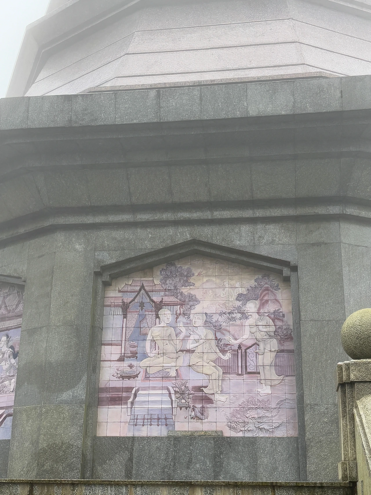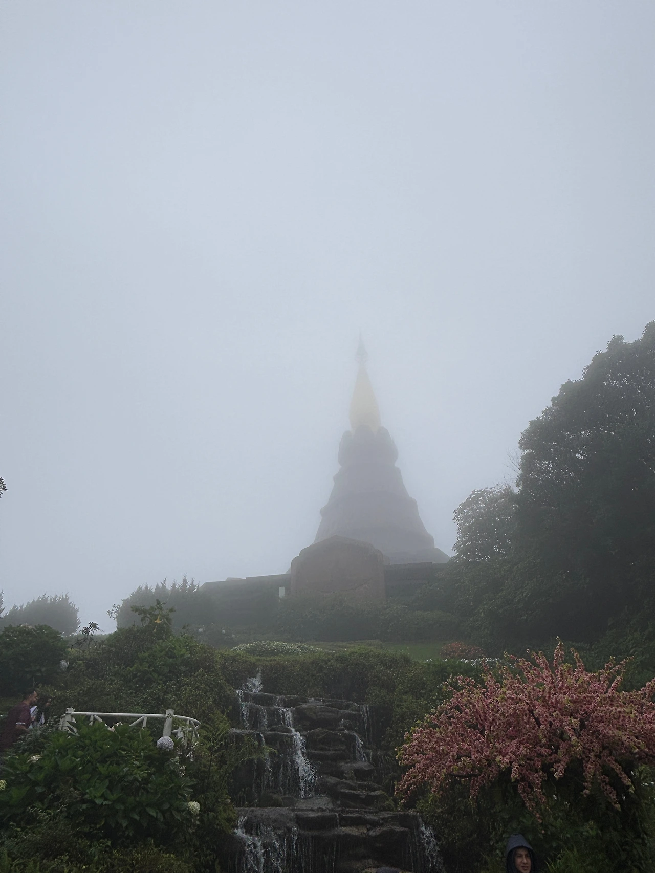 이곳에서의 설명을 마치고 다시 차로 돌아갔고, 왕과 왕비를 상징하는 부처상이 있는 곳에 왔다. 원래 치앙마이를 내려다보는 뷰가 예쁘다는데 안개가 심하게 껴서 아무것도 안 보이고 춥기만 하다. 둘러보라고 40분의 시간이 주어졌는데 시간이 남았다.