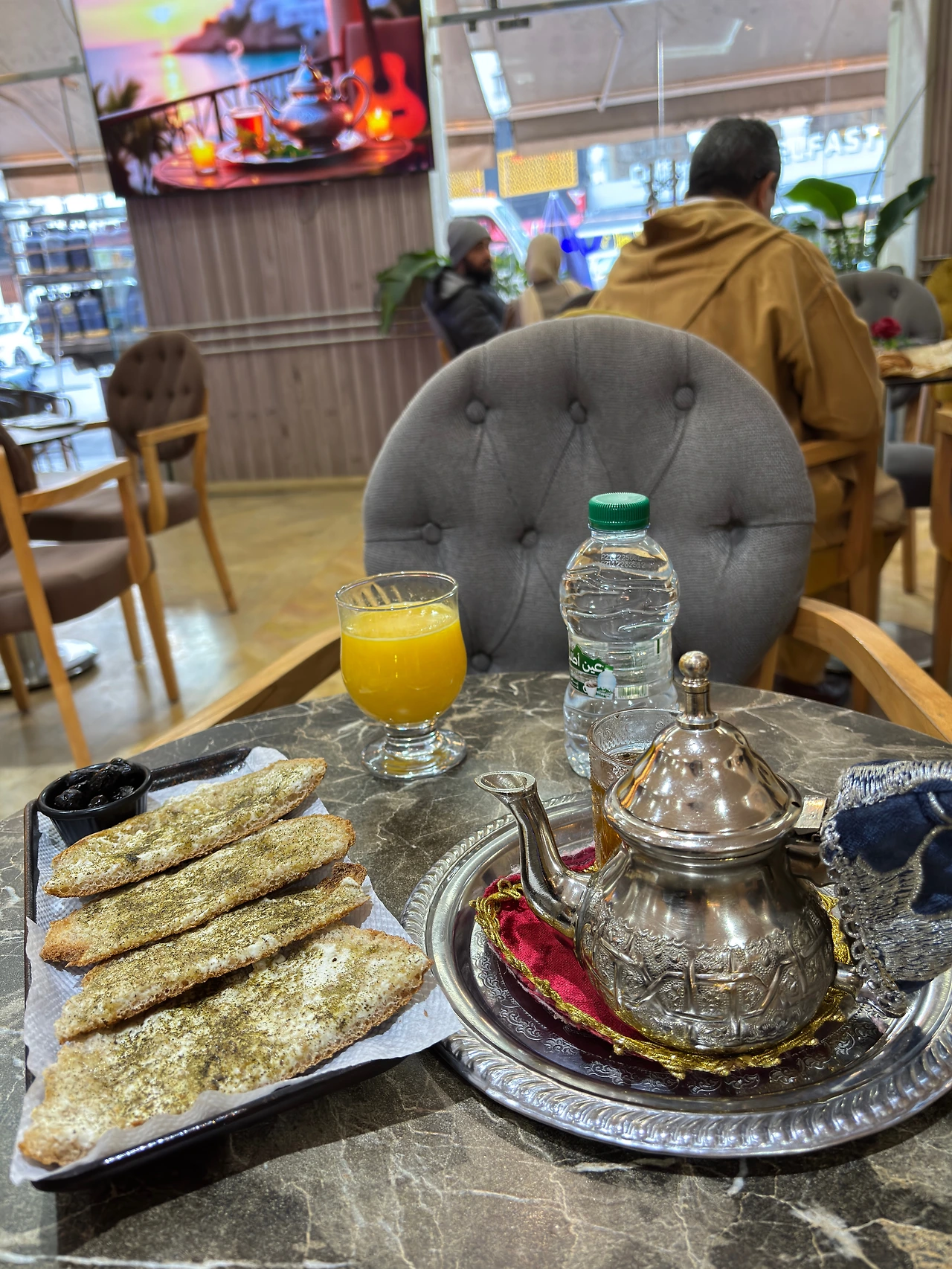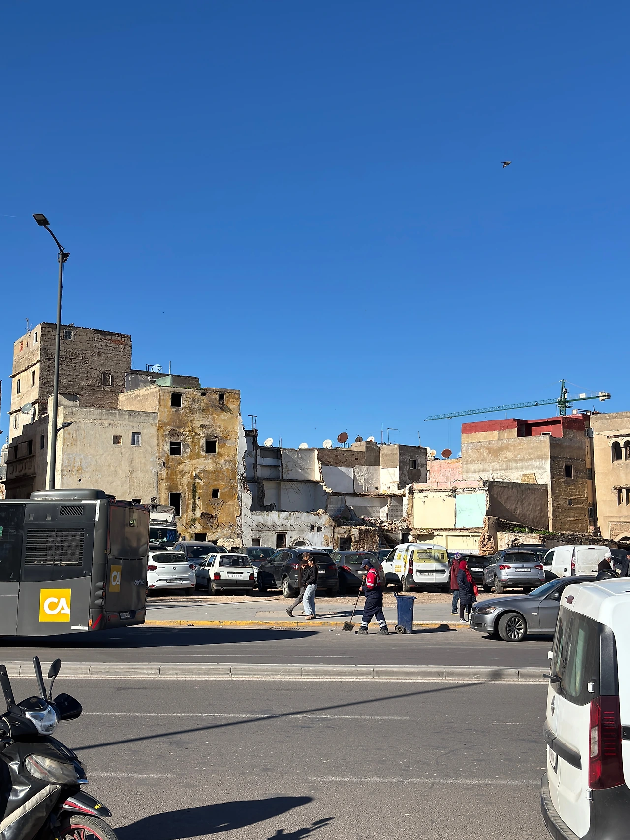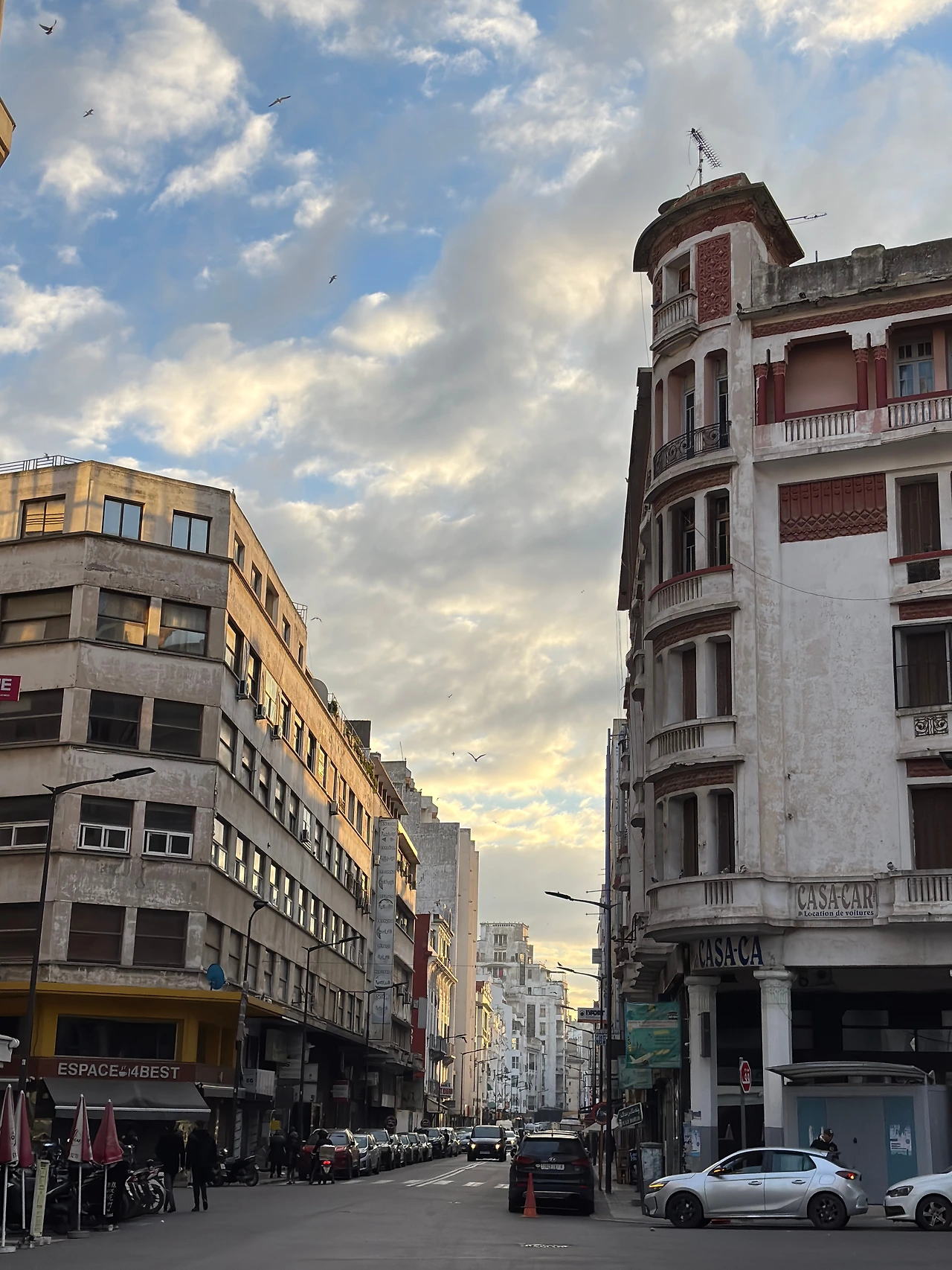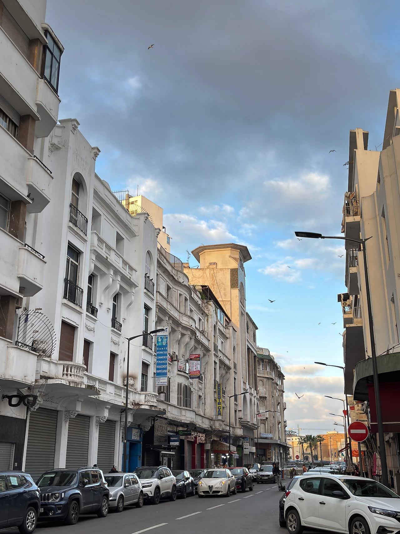 짐을 풀고 나오면 벨쥑끄 광장이라는 거리가 나오고, 구불구불한 길을 따라 내려오다 보면 메디나 한복판이 나온다. 일주일 간 모로코 여행을 하면서 메디나를 많이 다녔기 때문에, 그리고 오늘은 하루가 짧으므로 발길을 붙잡으며 말 거는 상인들을 뒤로하고 빠른 속도로 빠져나온다. 카사블랑카는 가볼 만한 곳이 많이 없었다. 메디나를 빠져나와 근처에 유엔광장이라는 곳이 나온다. 카사 포트와 메디나가 감싸는 건너편 안쪽의 한 지구에는 프랑스식 건물들이 가득한 골목에 많은 노천카페와 식당들이 나온다. 다음날 아침에 좀 일찍 일어나져서 카사블랑카를 떠나는 것이 아쉬워 아침을 먹을 겸 이곳을 산책하며 구경하고 사진도 찍었다. 제미나이에게 카사블랑카에서 가볼 만한 hidden gem을 알려달라고 해서 habbous라는 곳에 가려고 한다. 구글에서는 여기쯤 어디서에서 버스를 타라고 하는데 정확히 모르겠다. 버스 기사에게 물어보니 다른 버스를 타라고 알려준다.