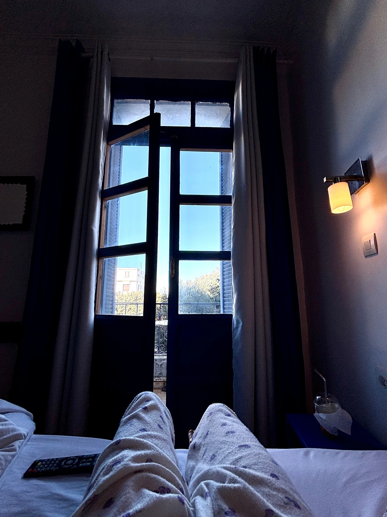 몸을 틀어 햇빛이 들어오는 오른편을 바라보고서는 눈만 말똥말똥 뜨려고 하며 멍한 채 또 한참 누워있는다. 리스본에서 묵었던 에어비앤비 방에는 기다란 문을 열면 발코니가 나왔던 게 떠오른다. 나만의 뻥 뚫린 이 작은 공간에서 문을 열면 화악-하고 들어오는 공기를 마시며 주변을 내다보는 게 얼마나 재밌고 소중한 일인지. 발코니에 서서 다른 건물과 사람, 나무, 새 등을 관찰하면 시간가는 줄 모른다. 예전에 부다페스트를 여행할 때 같이 여행하던 이탈리아, 스페인 사람들은 자기들끼리 각자의 언어로 대화하느라 바쁘고, 나는 까만머리를 틀어올리고 줄담배를 피워대는 이탈리아인 친구 옆에서 어둑해져 노오란 불빛이 따뜻하게 감싸는 유럽풍 건물을 따분하게 내다 보았다. 그때도 에어비앤비 였는데. 유럽에서는 층고 높고 수동으로 문을 여닫아야하는 엘리베이트가 았는 유럽식 아파트 에어비앤비에서 묵으면 시간 여행을 하는 느낌이 제대로 난다.