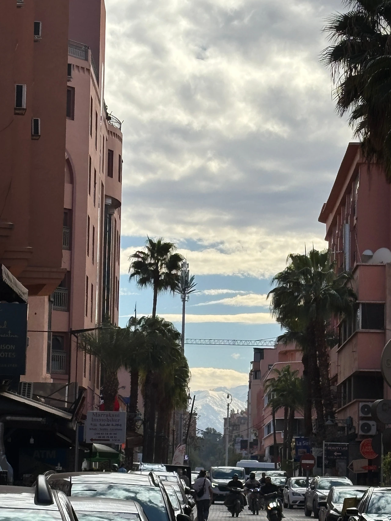 아틀라스 산맥 트레킹을 하고 제마 엘프나 광장으로 돌아왔다. 역시나 떠들썩하다. 호텔 방에 들어와 손을 씻고 핸드폰을 약간 충전하여 재정비한 뒤 슬슬 산책을 나왔다. 저녁이라 쌀쌀해지니 옷을 바꿔 입을까, 하다가 어제 사서 입은 이 니트가 충분히 따뜻해서 괜찮을 거라 생각한다. 파스텔톤 색색깔의 니트인데 색깔 조합과 에스닉한 게 마음에 든다. 동묘 같이 옷을 저렴하게 널어놓고 파는 그런 한 귀퉁이 옷가게에서 히잡을 쓰고 펑퍼짐한 무슬림 복장을 입은 아줌마들 사이를 헤집고 건져서 산 옷이다. 새해 전날 마라케시에 왔을 때 1박 하던 숙소 골목으로 들어서서 Tinsmiths Square라고 하는 곳까지 걸어서 내려가보려 한다. 도보로는 10-15분 정도 구경하면서 가다 보면 어느새 도착이다. 구글 지도에 연한 개나리색으로 표시된 이 골목은 기념품 상점, 가죽 신발과 가방, 1-2유로짜리 작은 소스 그릇 같은 게 입구에 쌓여있는 그릇 가게가 죽 늘어서 있고, 광장 한복판보다 좀 저렴한 길거리 음식을 파는 작은 골목 식당들이 있다.