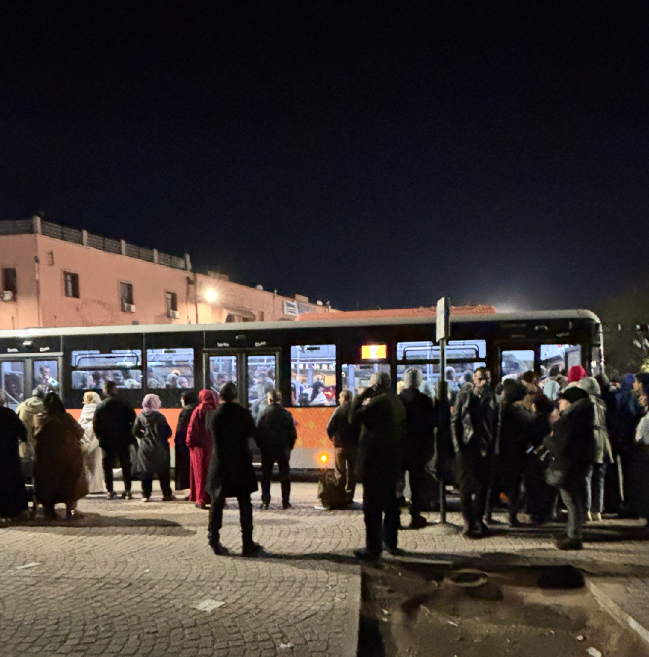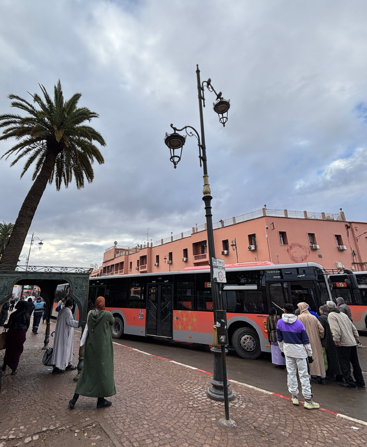 마라케시에서 인, 아웃을 하느라 마라케시 공항에서 제마엘프나 광장(시내), 제마엘프나에서 기차역, 기차역에서 제마엘프나, 제마엘프나에서 공항, 이렇게 이동할 때 모두 버스를 이용했다. 그런데 공항과 제마엘프나 광장처럼 많은 버스가 다니고 멈춰 서는 곳이 아니면 그냥 중간중간 버스 정류장에서는 버스를 타기 힘들다. 기차역이나 다른 곳에서 호텔이 있는 광장으로 돌아올 때도 버스를 타기 힘들었다. 버스정류장이라는 게 따로 없고 구글 지도가 여기서 버스 타라, 하는 지점이 맞지 않는 경우가 많으며 버스가 서지 않고 그냥 지나갔다.