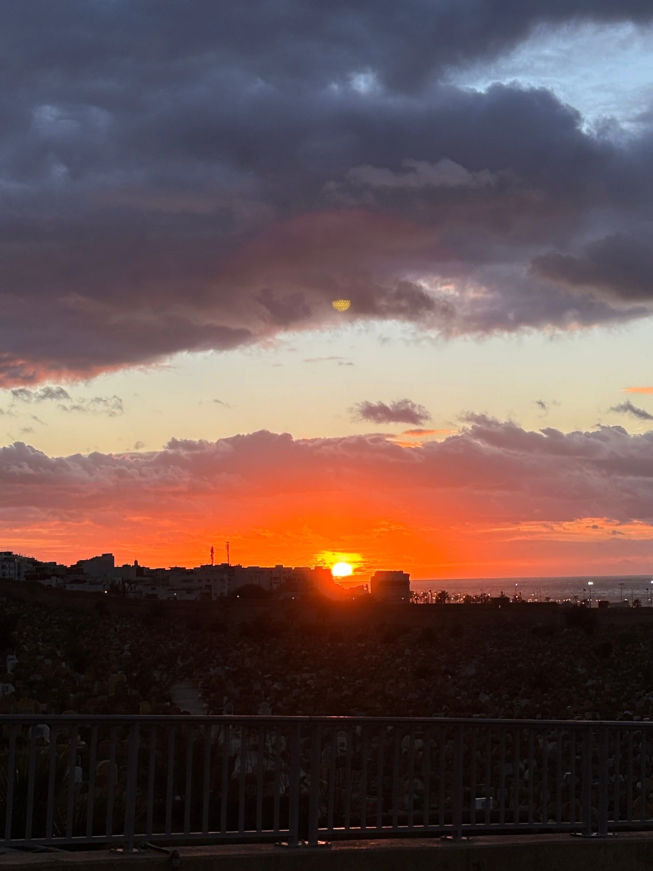 요 며칠 계속 비가 오다가 어제오늘 포근하고 맑은 날씨여서 구름도 흐리지 않고 쨍한 형광 주황색 일몰을 본다. 하루 종일 몽롱한 채로 걷다가 운좋게 일몰을 만났을 때 순간적으로 에너지가 생겼다. 해는 바다 쪽이 아닌 바다에서 약간 안쪽에 있는 무덤가 위로 지기 시작했다. 일몰이 아니면 이곳이 무덤가인지도 몰랐을 것이다. 각자의 색깔과 크기와 모양을 가진 비석이 들쑥날쑥 세워져 있는 슈하다 묘지 위로 태양이 그토록 화려하게 색을 뽑아내면서 져간다. 무덤 바로 옆은 저 너머에는 어떤 세상이 있을까 싶게 깊고 끝없어 보이는 대서양의 어두워진 깊은 바다에 파도가 친다.